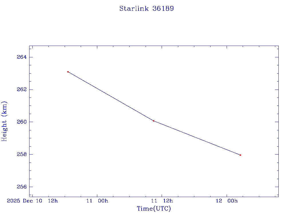 | Starlink 36189 | S67010 | D | 2025 Dec 10 | * | - |  |  |  |