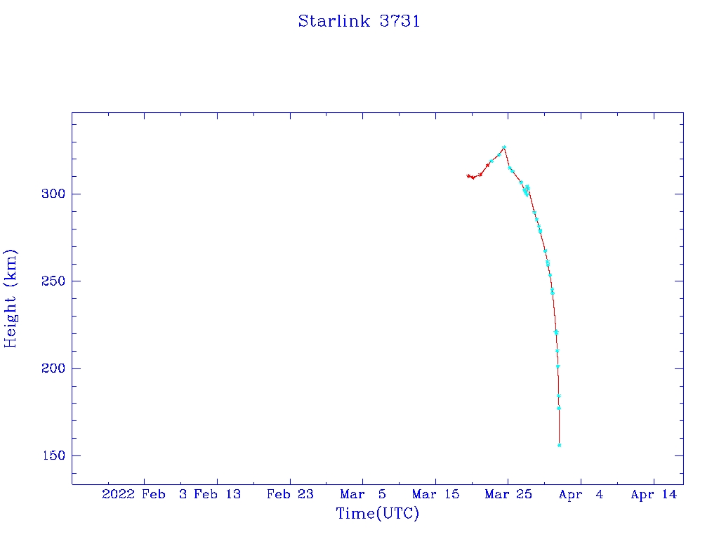 Starlink 3731S52109F2022 Mar 19 2022 Mar 27?2022 Apr 1