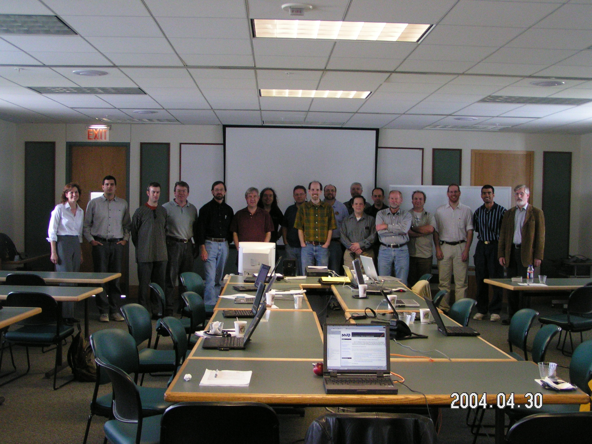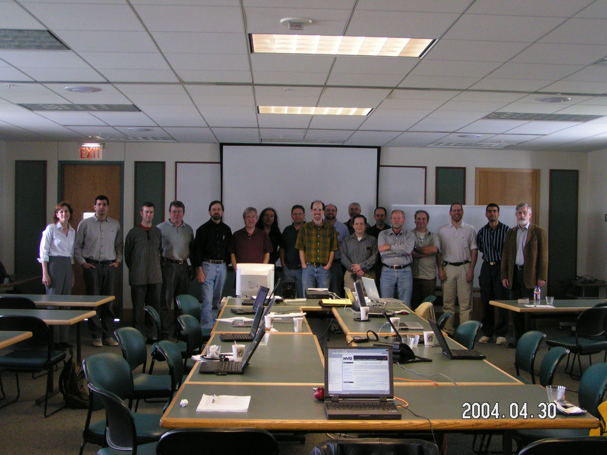 | pict0155.jpg Team VO 2004: Gretchen Green, Tamas Budavari, Will O'Mullane, John Good, Bob Hanisch, Alex Szalay, Jonathan McDowell, David Schade, Ray Plante, Ramon Williams, Frank Valdes, Ed Shaya, Pavlos Protopapas, Doug Tody, Roy Williams, Matthew Graham, Vivek Haridas, Arnold Rots. |