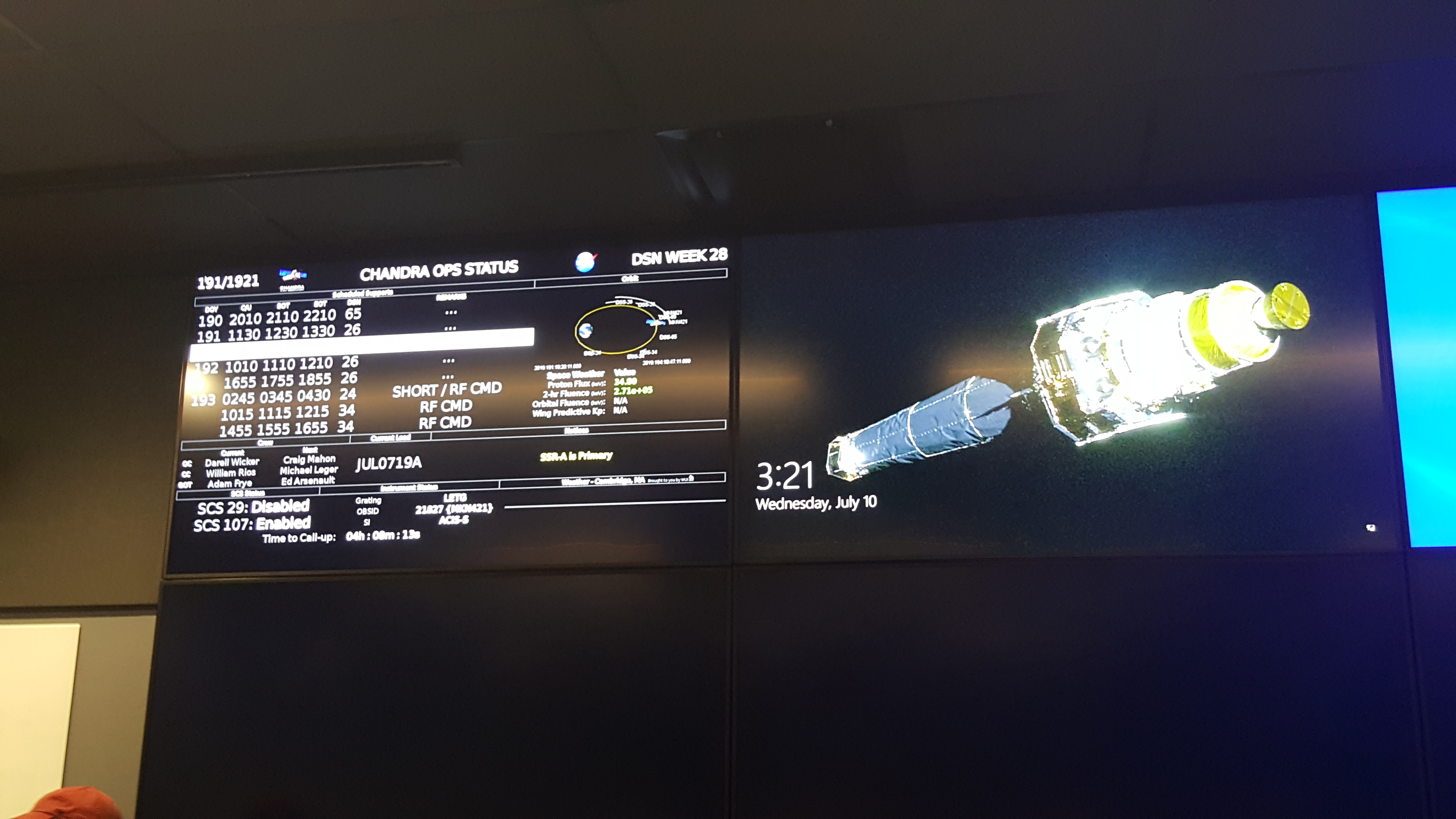 of our visit Chandra was observing the blazar Mkn421 with the ACIS-S/LETG instrument combo. |