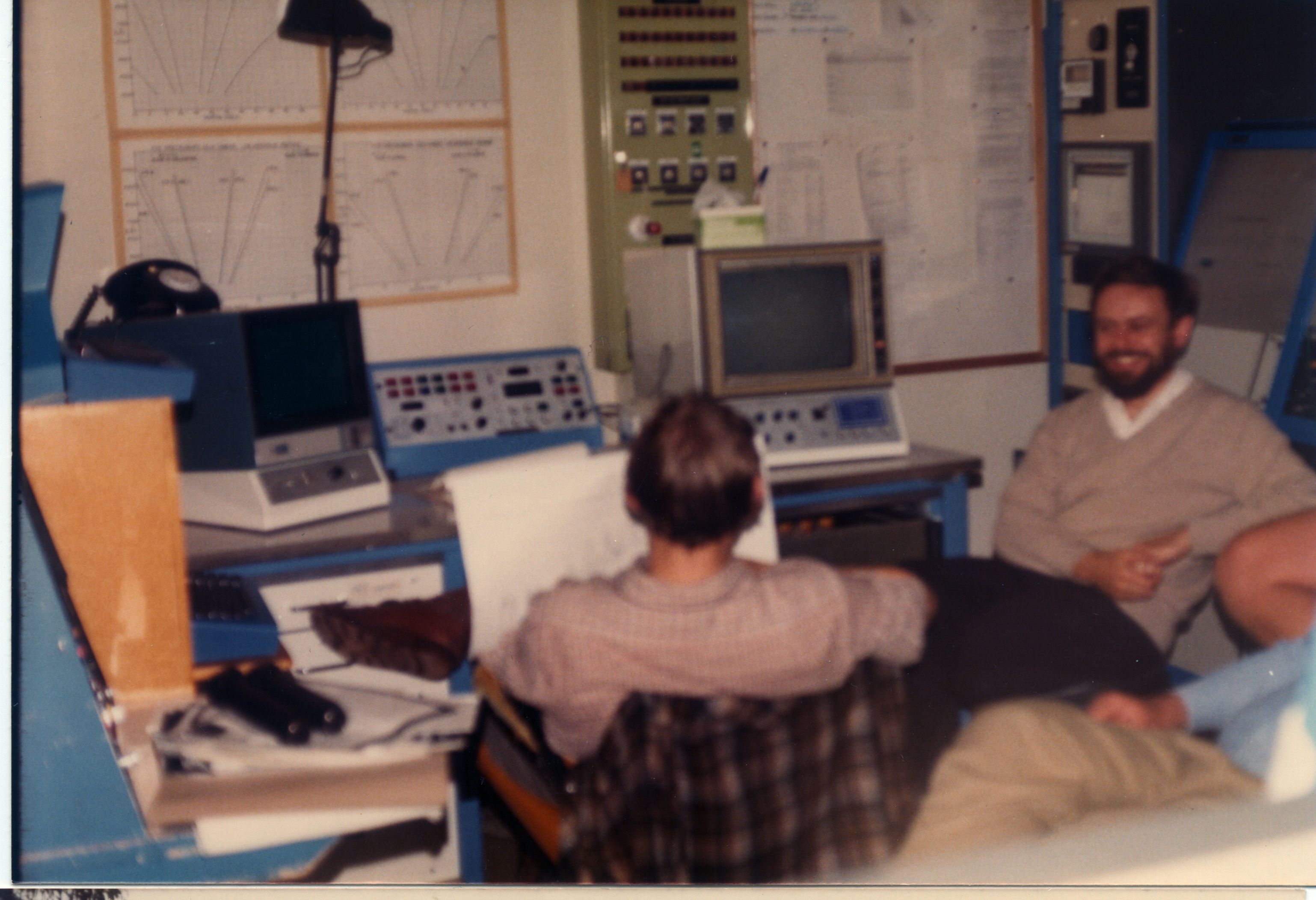 1983.pic117.jpg AAT control room, with Dave Axon and Russell Cannon |