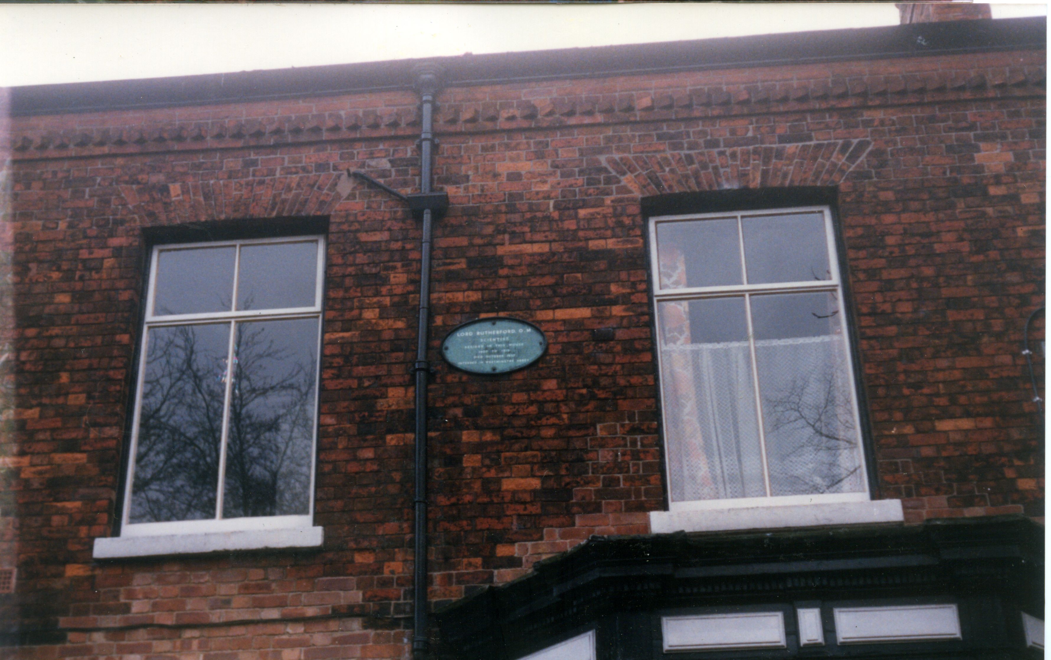 pic054.jpg Lord Rutherford O.M., Scientist, resided in this house 1907 to 1910 (?). Died October 1937, Interred in Westminster Abbey |