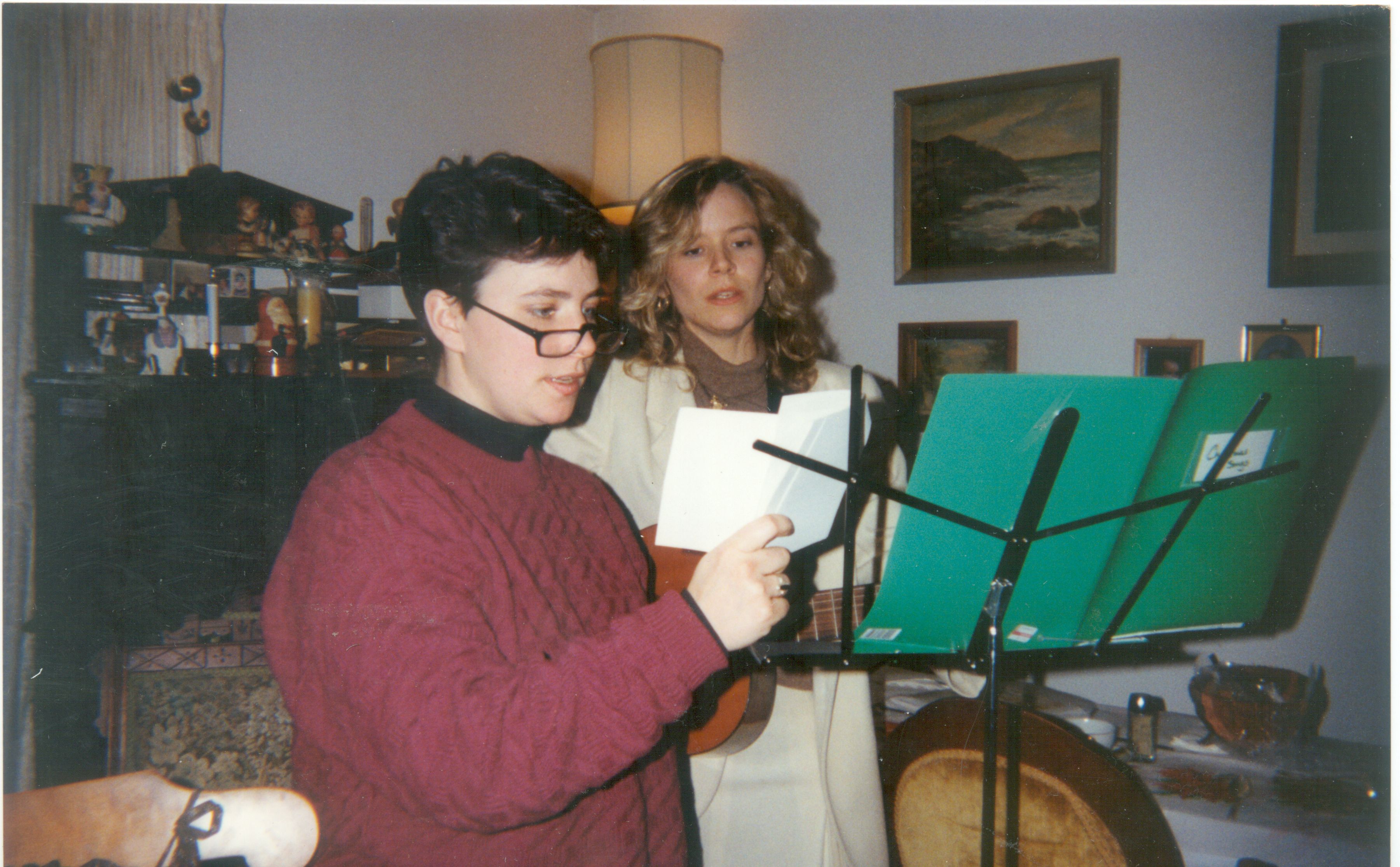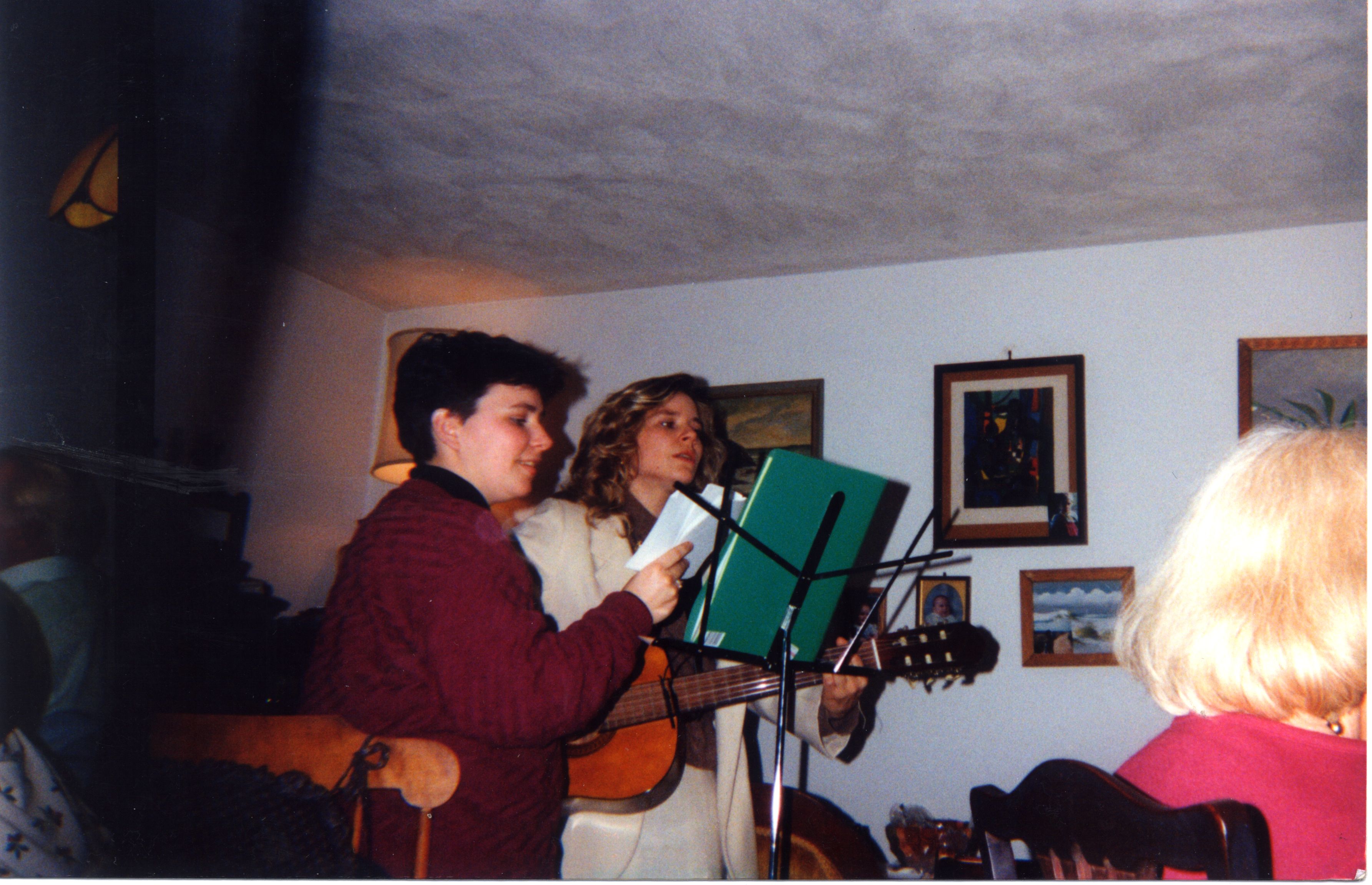 | pic268.jpg Jess and friend Stef singing, T'giving 1992 |