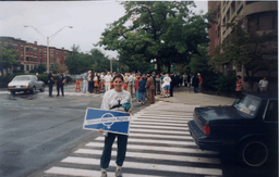 pic22.jpg Lynne Raschke and Rhena, with Nancy and Larry holding signs, 1997 |