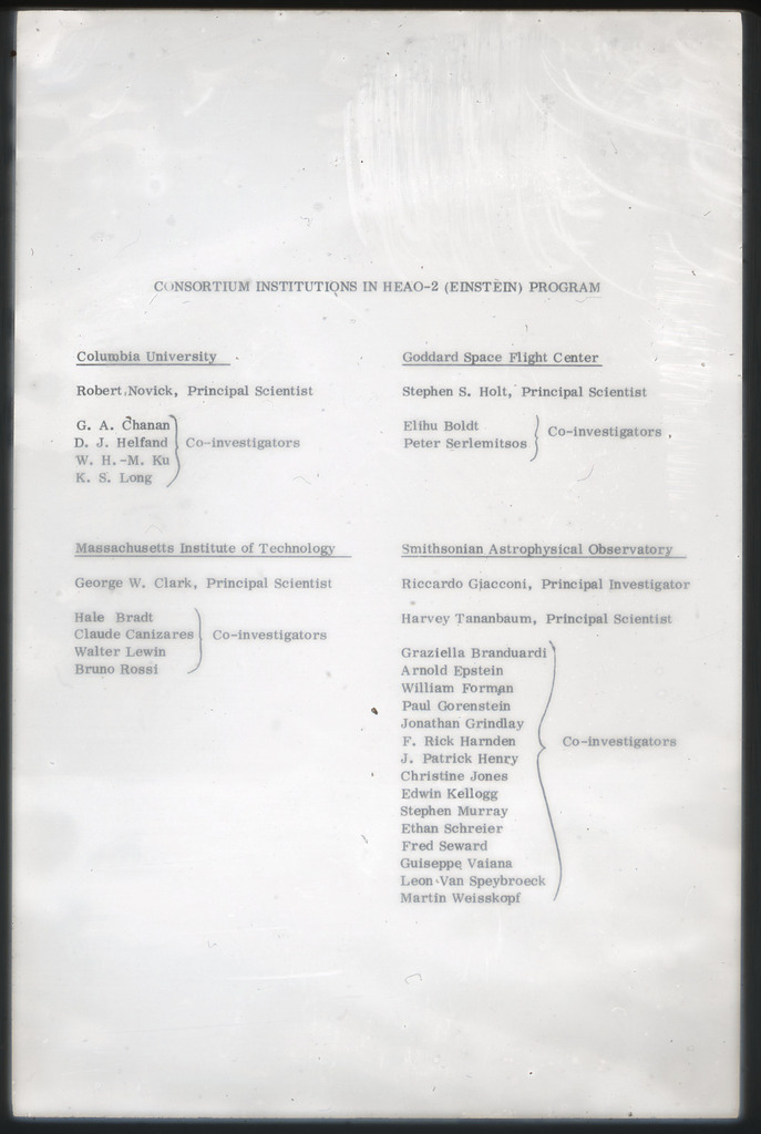 E/62 Consortium Institutions in HEAO-2 Program |
