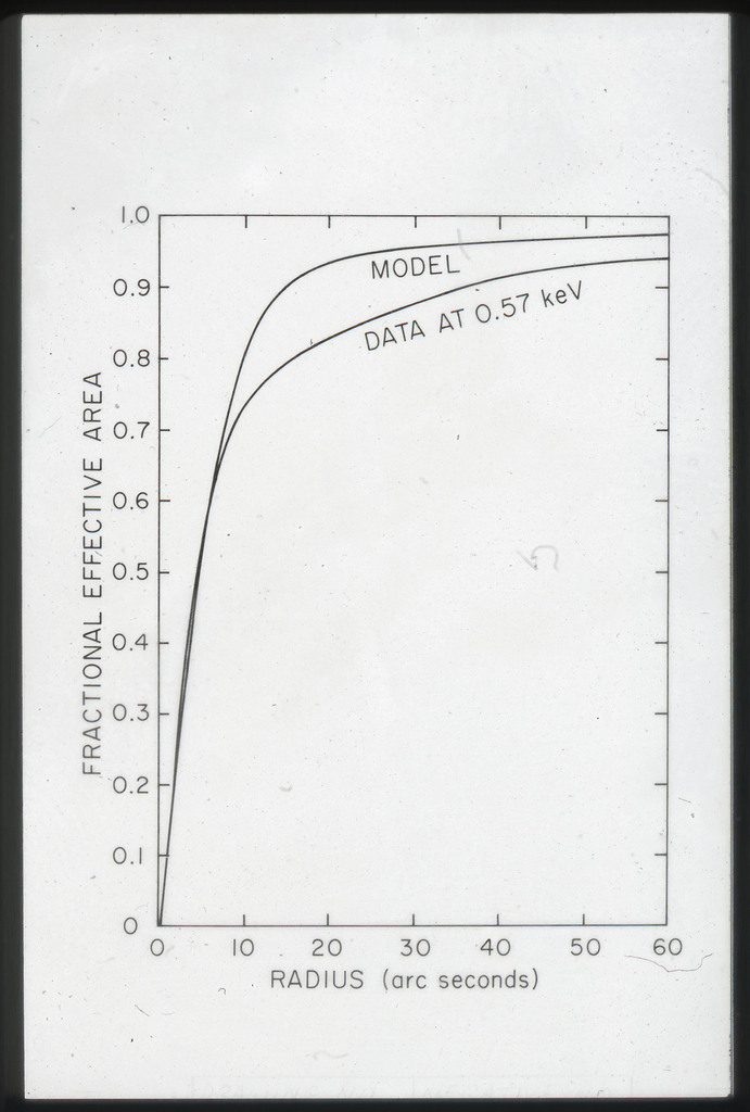 E/46 HRI-OGS effective area, 1,000 line/mm grating. Solid line is theoretical prediction, points are calibration data. |