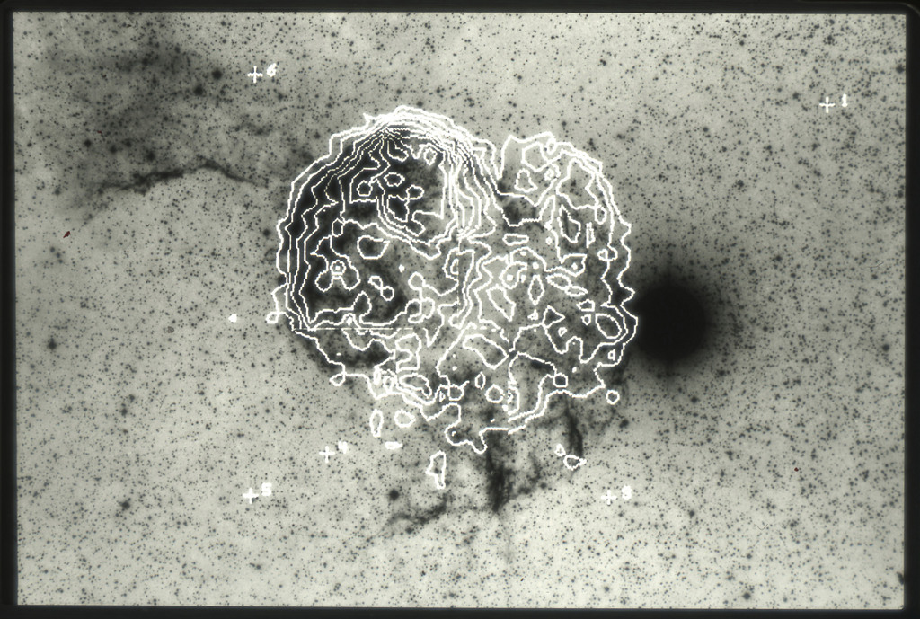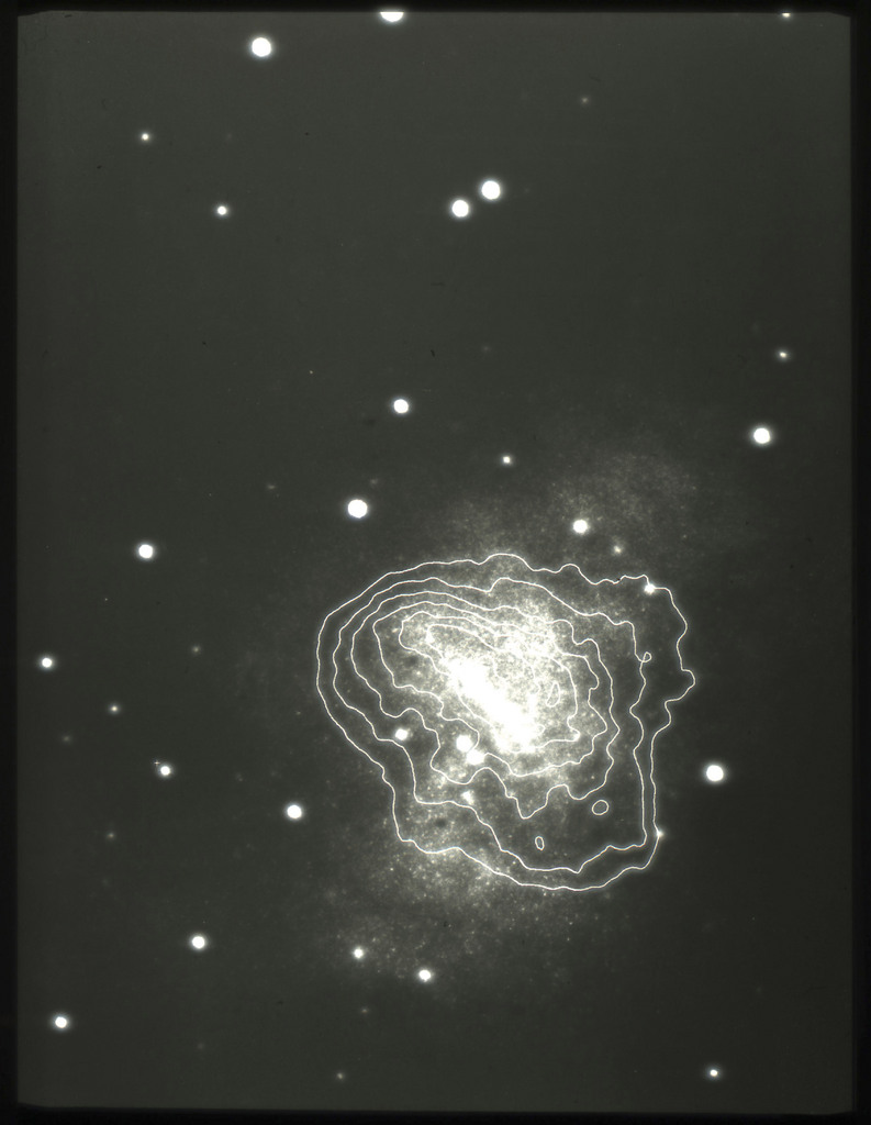 E/1031 Isointensity X-ray contours from the IPC observation superimposed on the POSS print. |