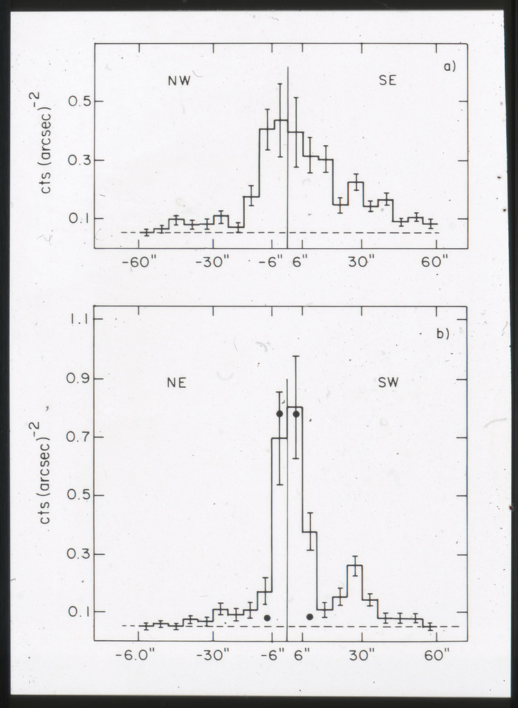 E/1006 The radial distribution of x-ray photons in the nuclear region of M51 (histogram) compared to the HRI point spread function (solid line). |
