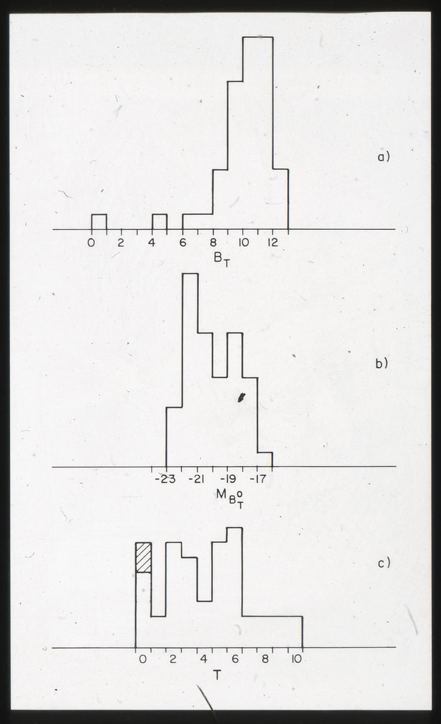E/988 Spiral galaxies, B_T, M_{B_T}, T distributions. |