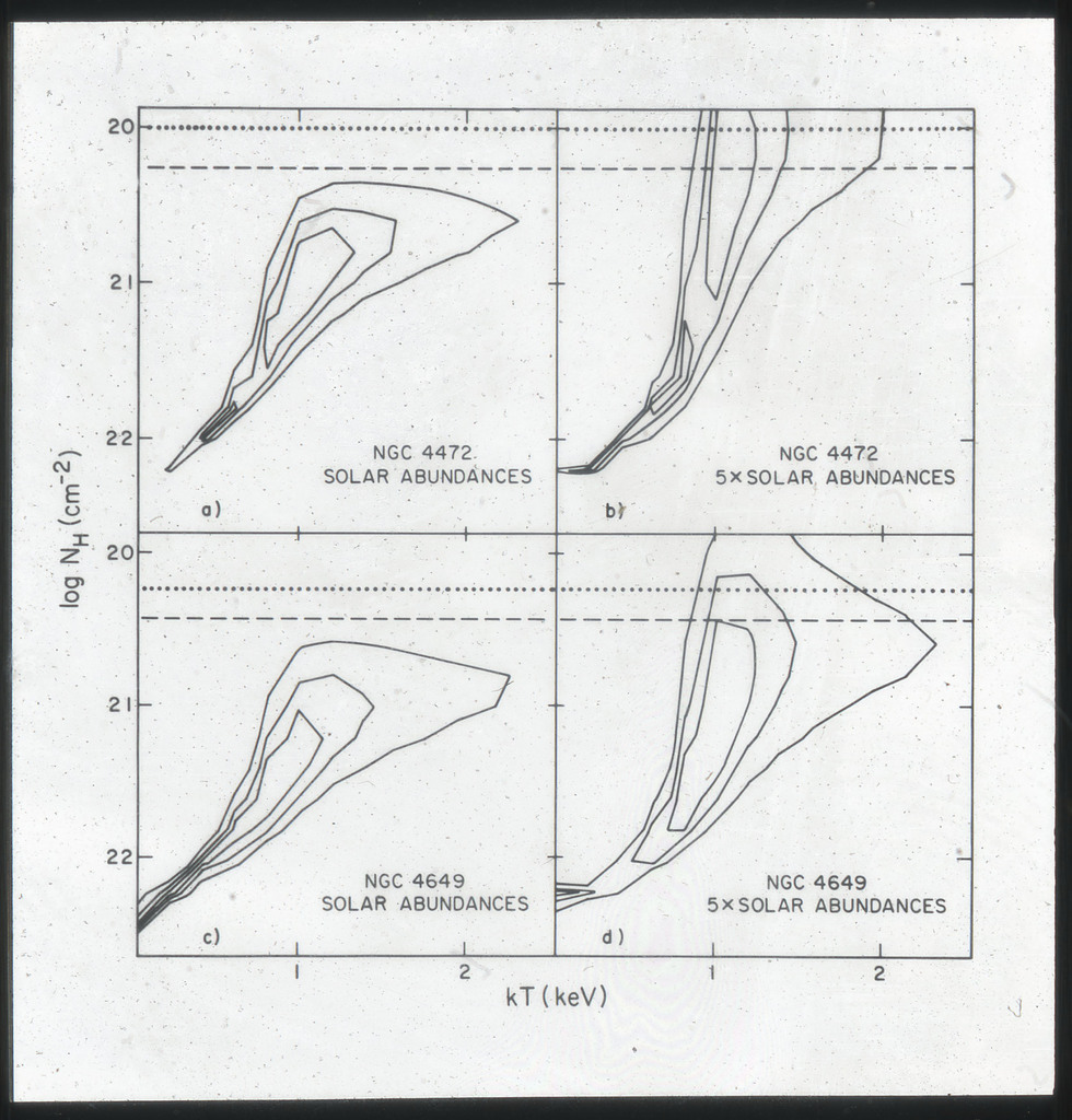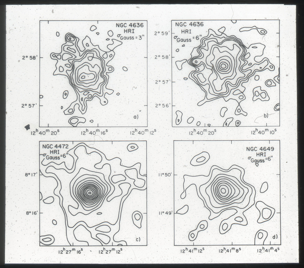 E/1033 Isointensity X-ray contours of the HRI observation for NGC 4636, 4472 and 4649. |