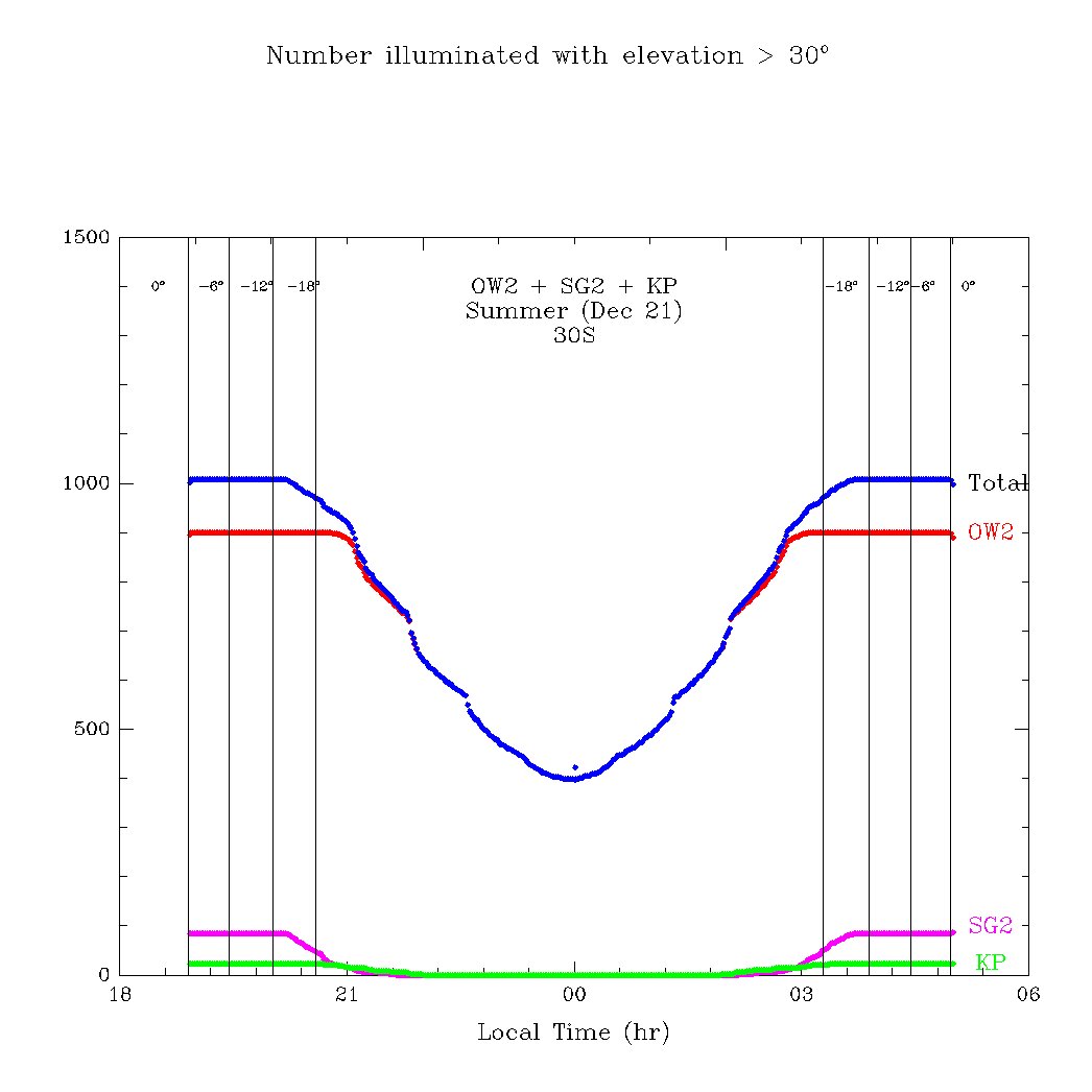 In Jan 2021 OneWeb announced a major reduction in the number of planned satellites in their constellation. Here I show the combined OneWeb/Starlink Gen 2/Kuiper visibility plots at 30 deg South in summer, for both the old and the new plans.