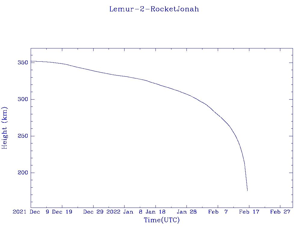 | Lemur-2-RocketJonah | S43041 | | 2017 Nov 12 | 2020 Nov? | 2022 Feb 14 |  |  |  |