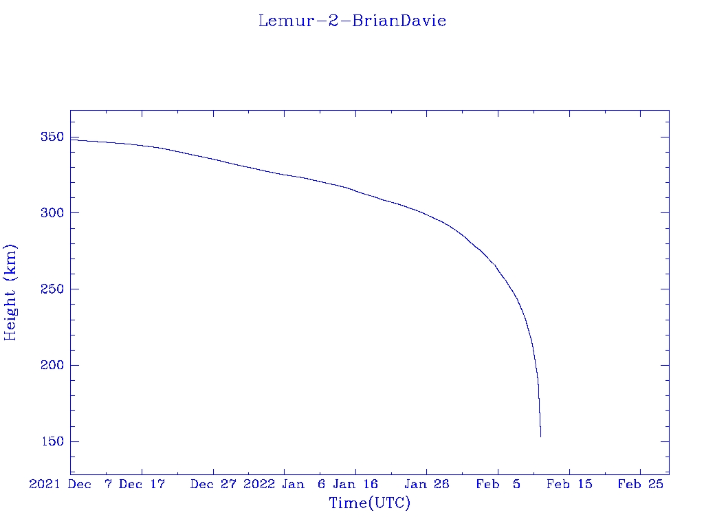 | Lemur-2-BrianDavie | S43047 | | 2017 Nov 12 | 2020 Nov? | 2022 Feb 12 |  |  |  |