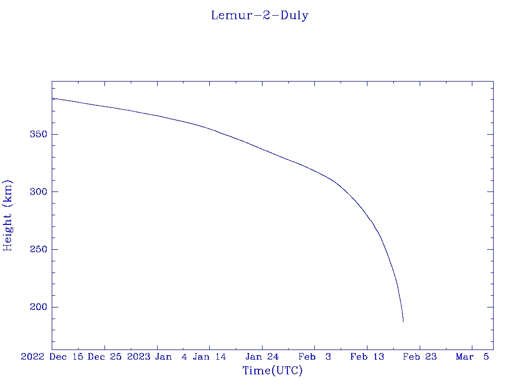 | Lemur-2-Vladimir | S43746 | | 2018 Nov 29 | 2022 Dec? | 2023 Jan 13 |  |  |  |