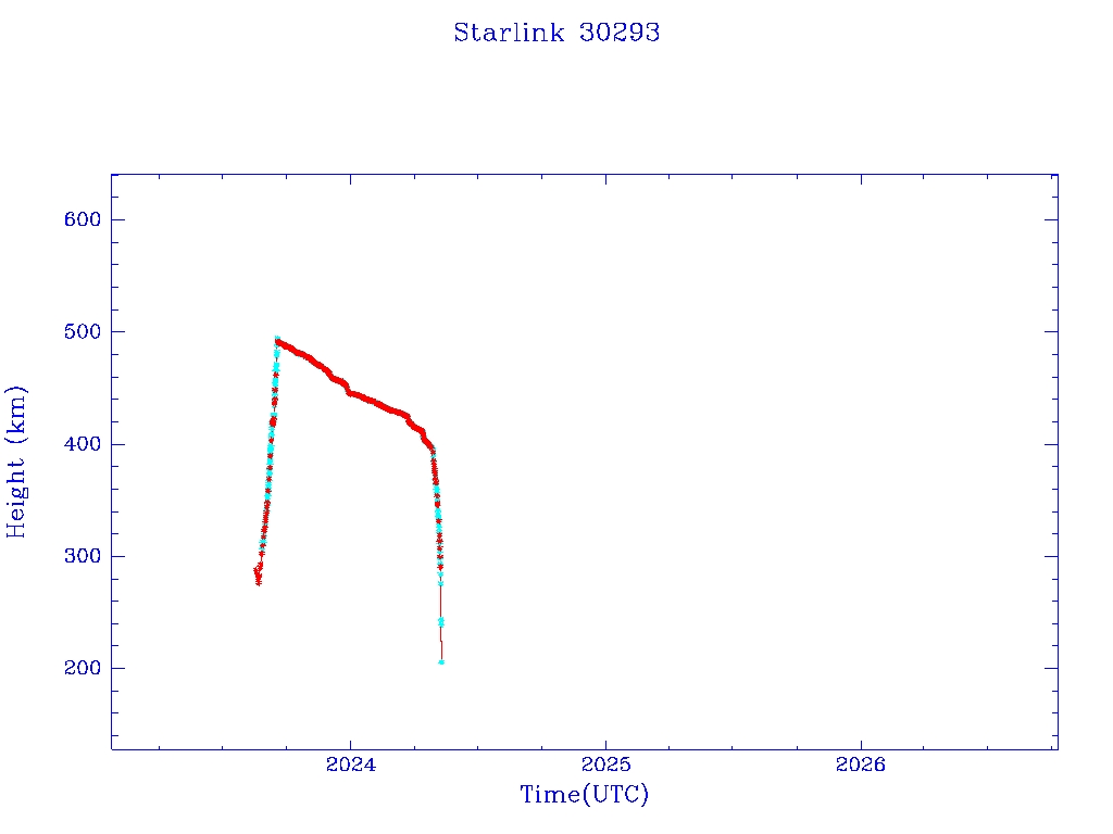 | Starlink 30293 | S57649 | M | 2023 Aug 17 | 2023 Sep 17 | 2024 May 8 |  |  |  |