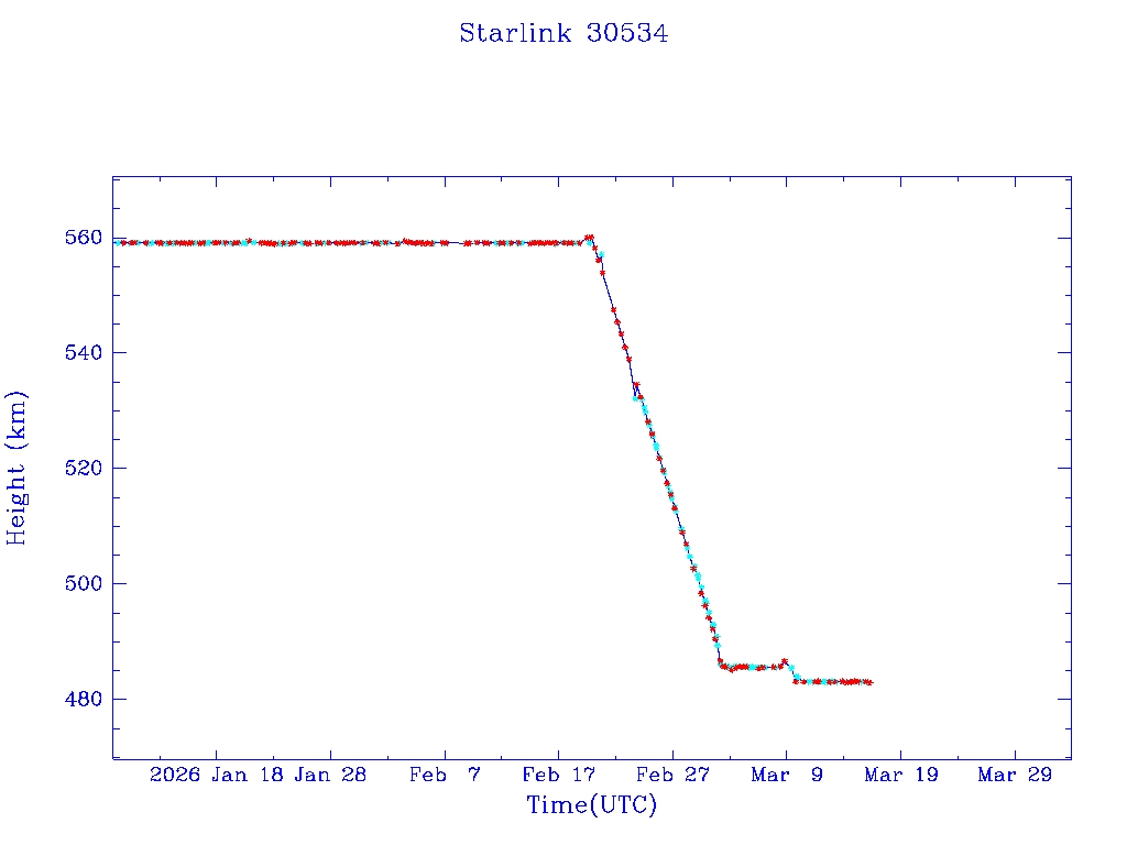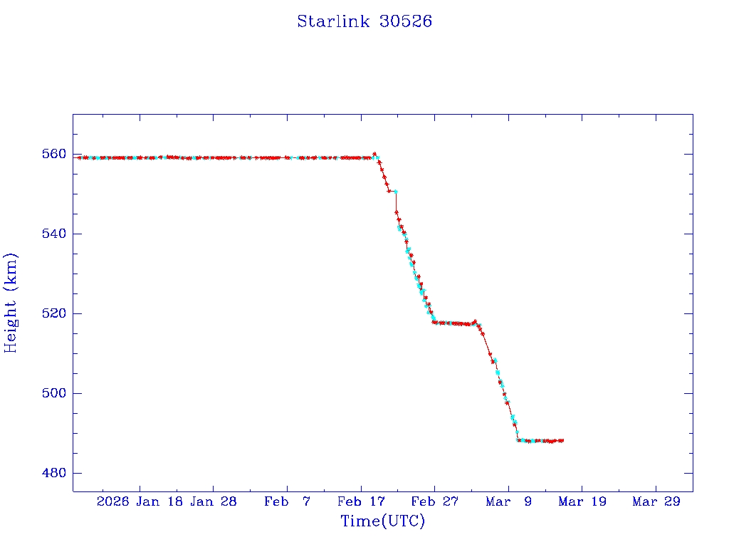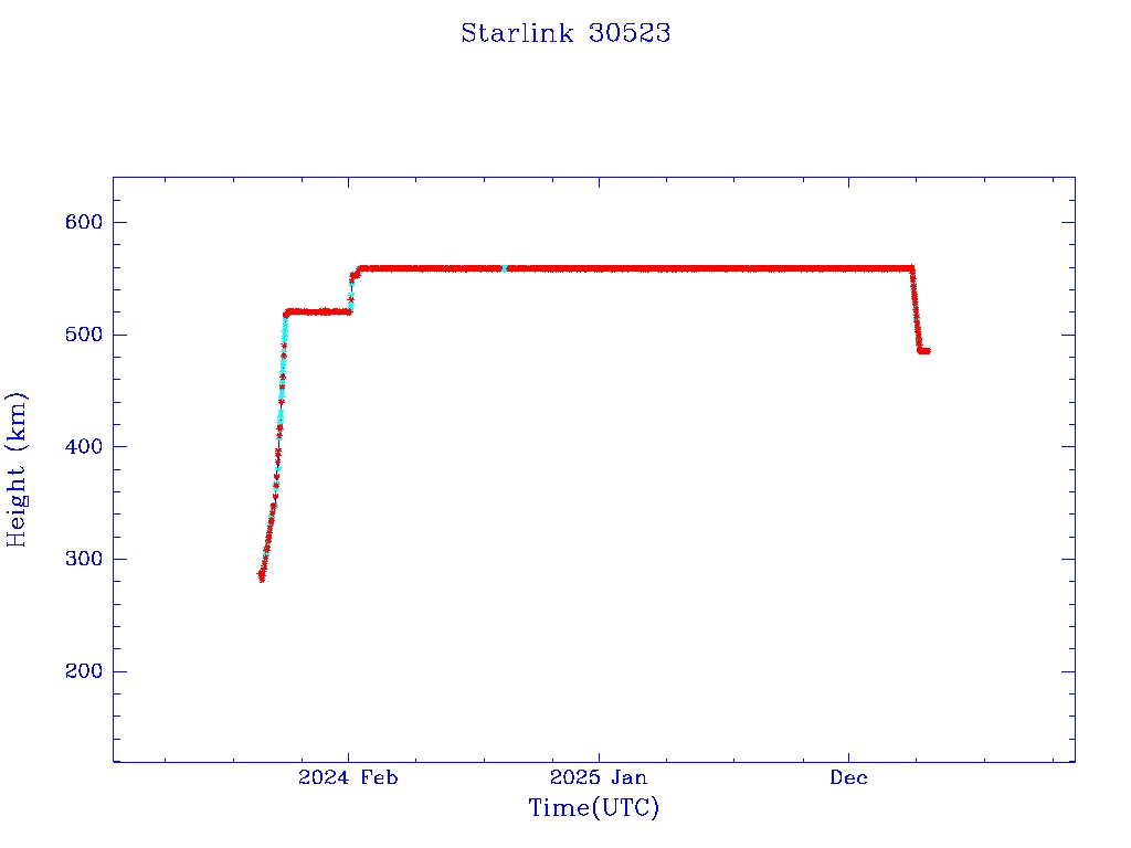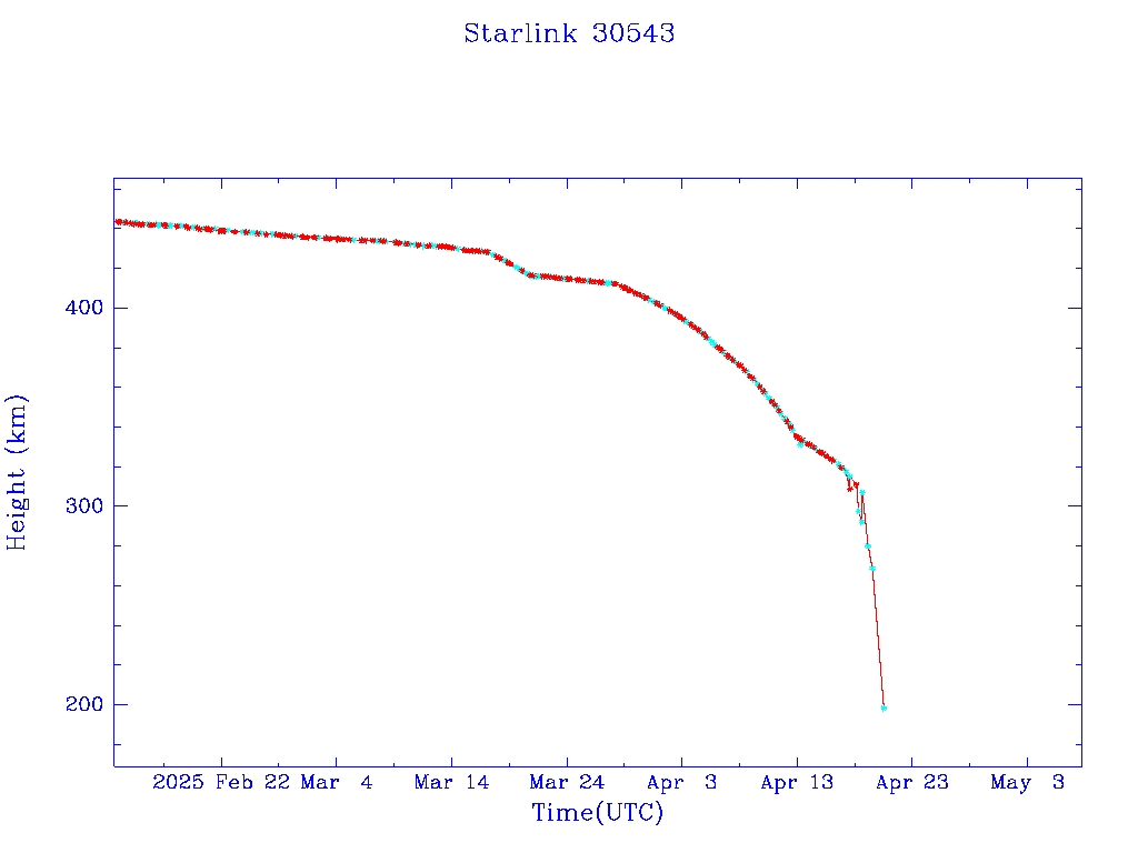 | Starlink 30543 | S57996 | R | 2023 Oct 5 | 2025 Apr 13? | 2025 Apr 20 |  |  |  |