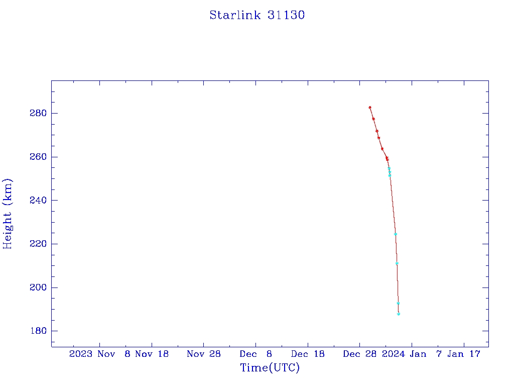 | Starlink 31130 | S58667 | F | 2023 Dec 29 | 2023 Dec 29 | 2024 Jan 4 |  |  |  |