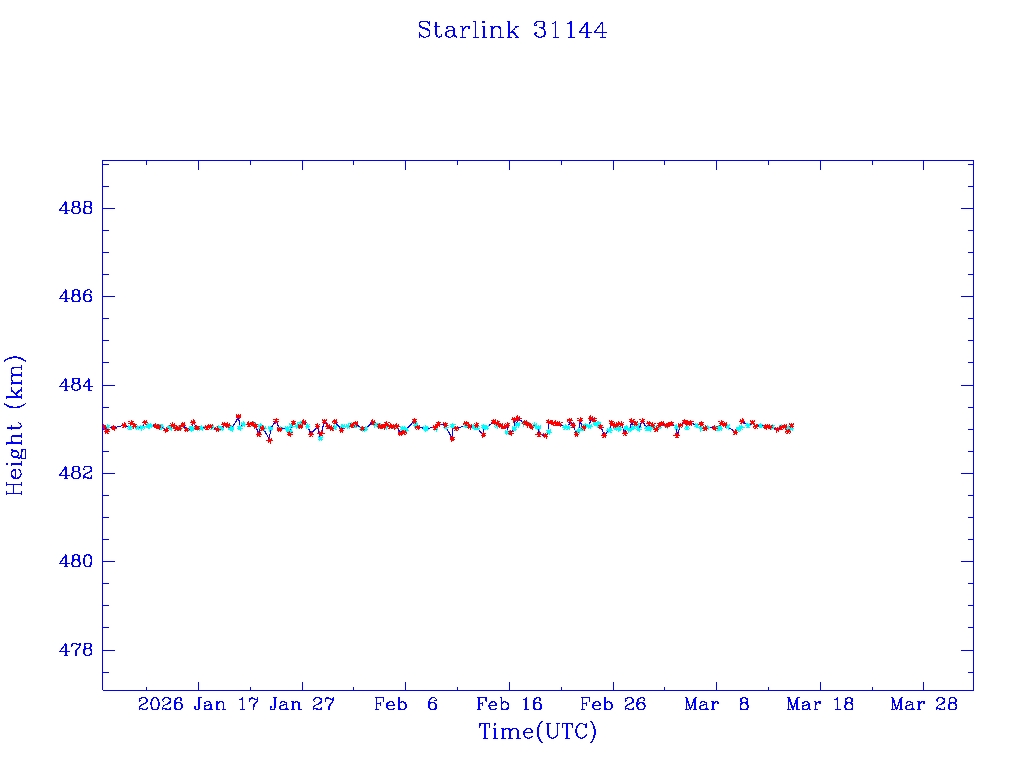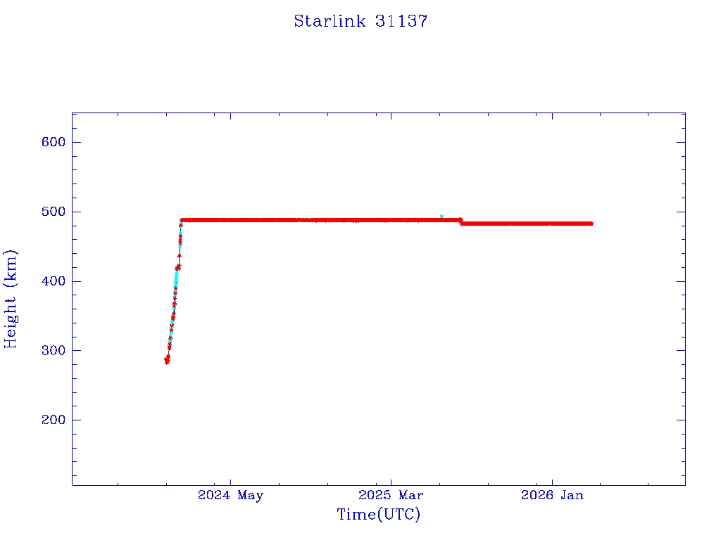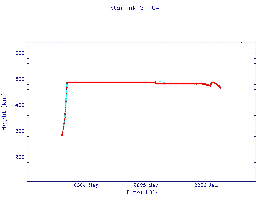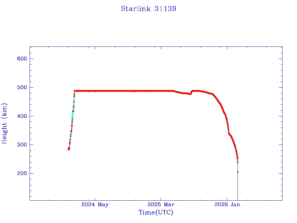| Starlink 31139 | S58688 | R | 2023 Dec 29 | 2026 Jan 7? | 2026 Feb 17 |  |  |  |