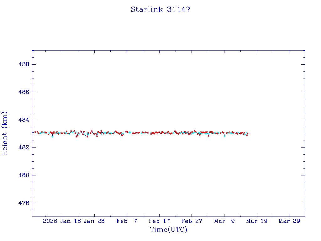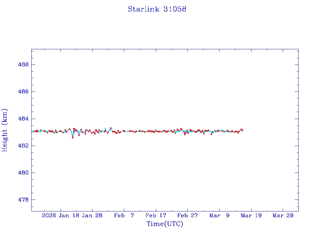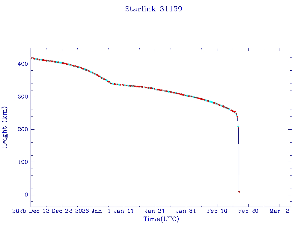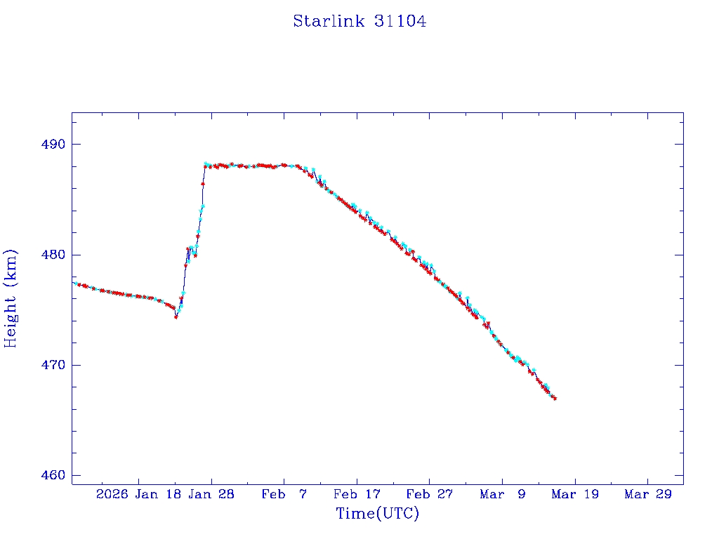 | Starlink 31139 | S58688 | R | 2023 Dec 29 | 2026 Jan 7? | 2026 Feb 17 |  |  |  |
