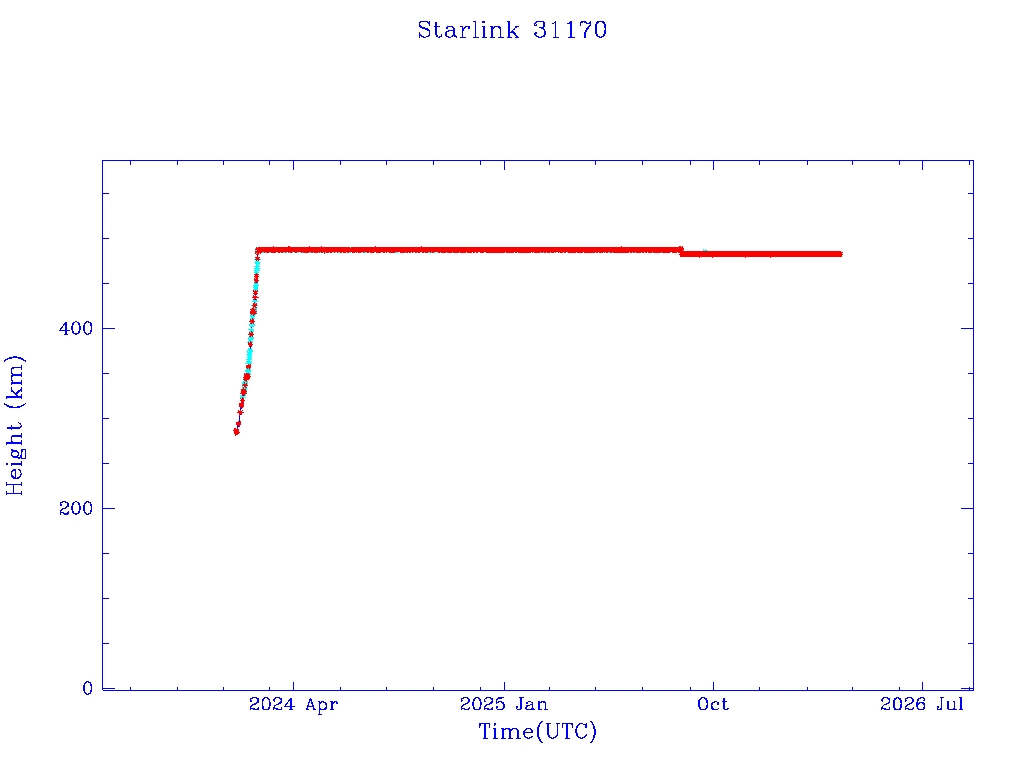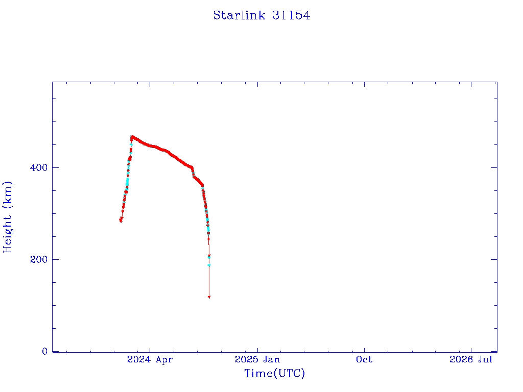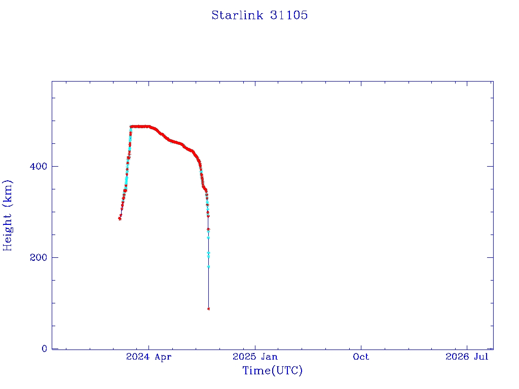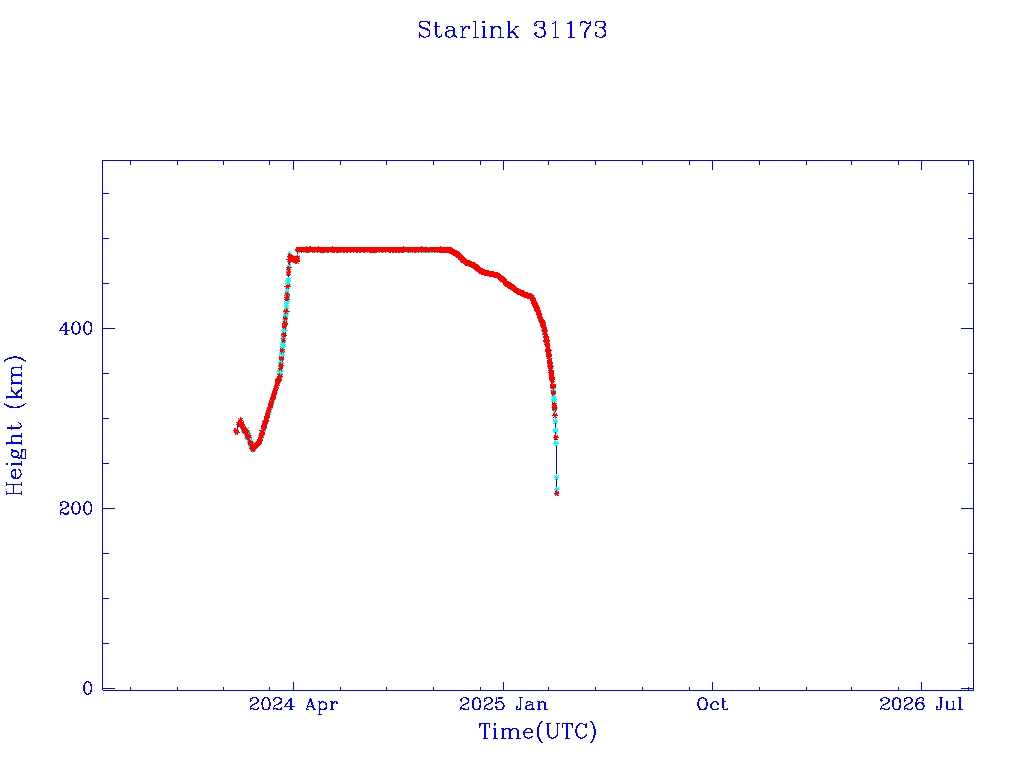 | Starlink 31173 | S58802 | R | 2024 Jan 15 | 2025 Feb 19? | 2025 Mar 10 |  |  |  |