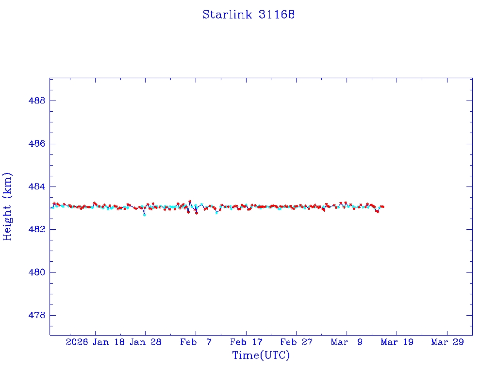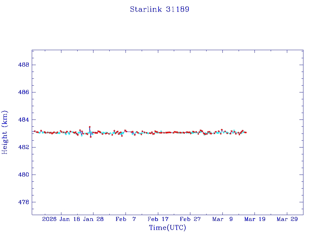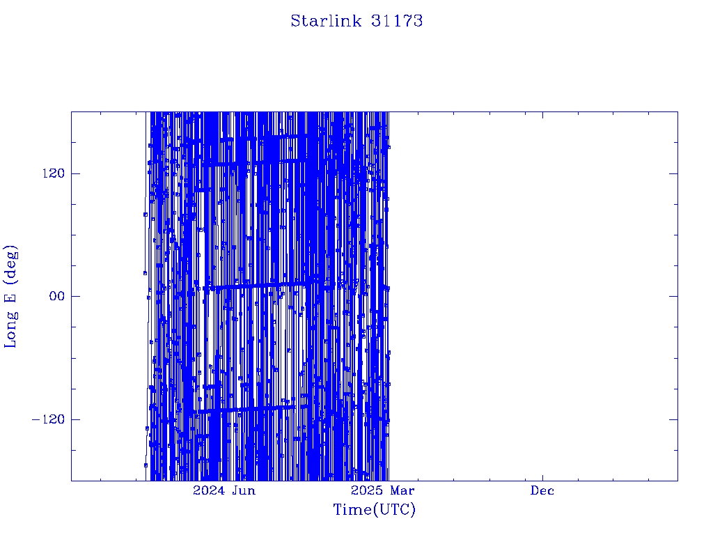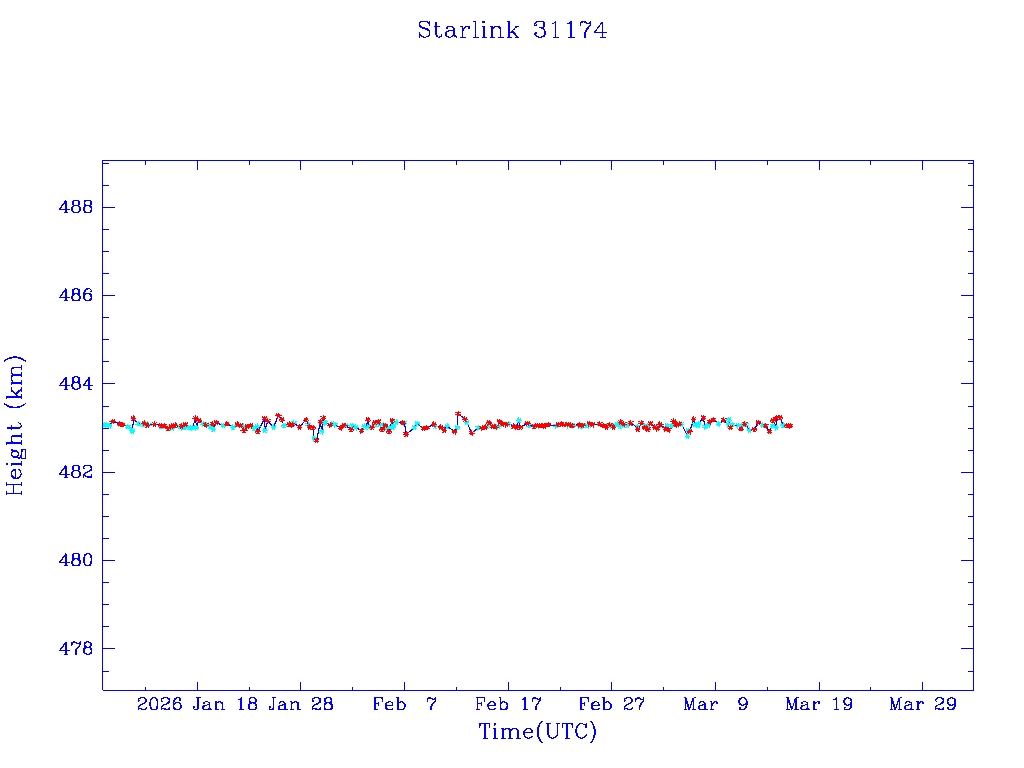 | Starlink 31173 | S58802 | R | 2024 Jan 15 | 2025 Feb 19? | 2025 Mar 10 |  |  |  |