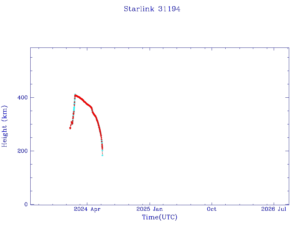 | Starlink 31194 | S58792 | F | 2024 Jan 15 | 2024 Apr 25 | 2024 Jun 6 |  |  |  |