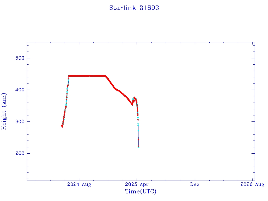 | Starlink 31893 | S59792 | R | 2024 May 18 | 2025 Mar 30? | 2025 Apr 7 |  |  |  |