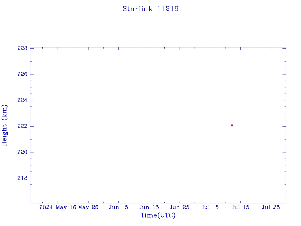 | Starlink 11219 | A11254 | F | 2024 Jul 12 | 2024 Jul 12 | 2024 Jul 12 |  |  |  |