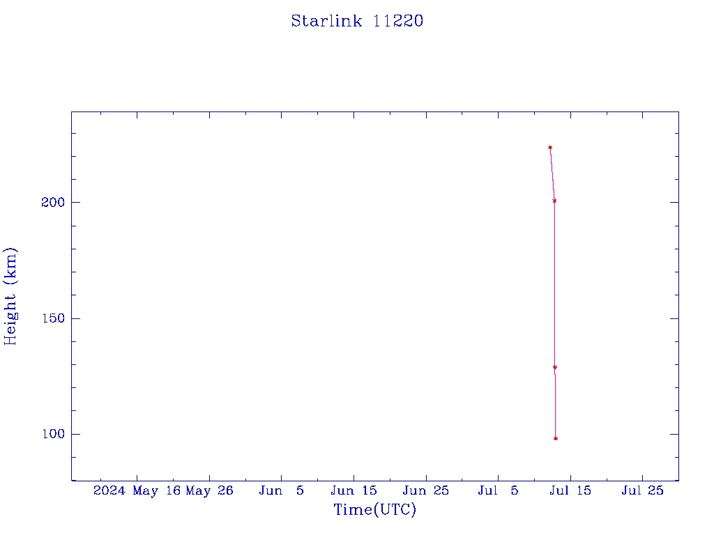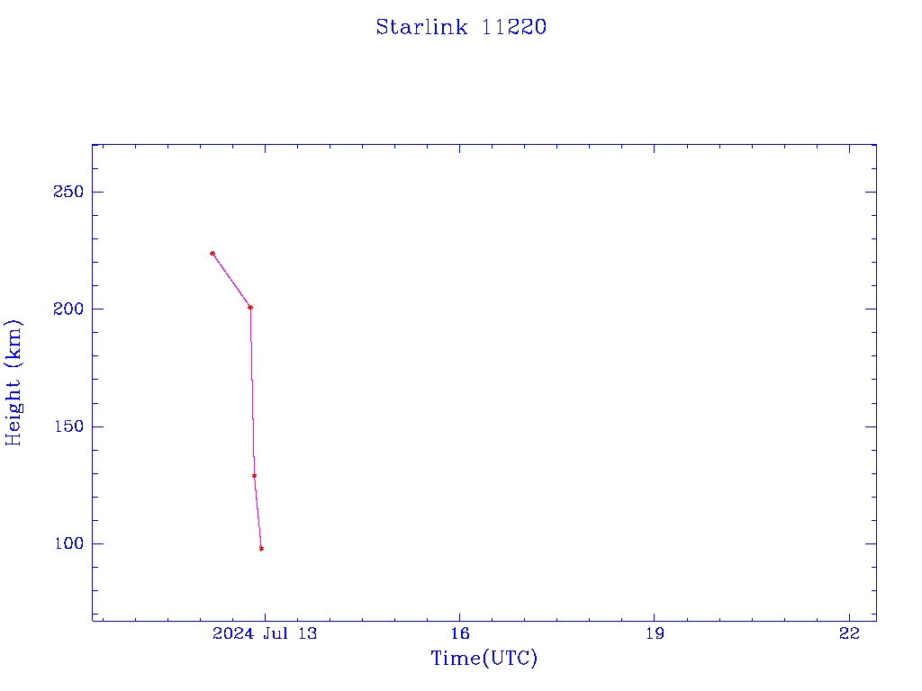 | Starlink 11220 | A11256 | F | 2024 Jul 12 | 2024 Jul 12 | 2024 Jul 12 |  |  |  |