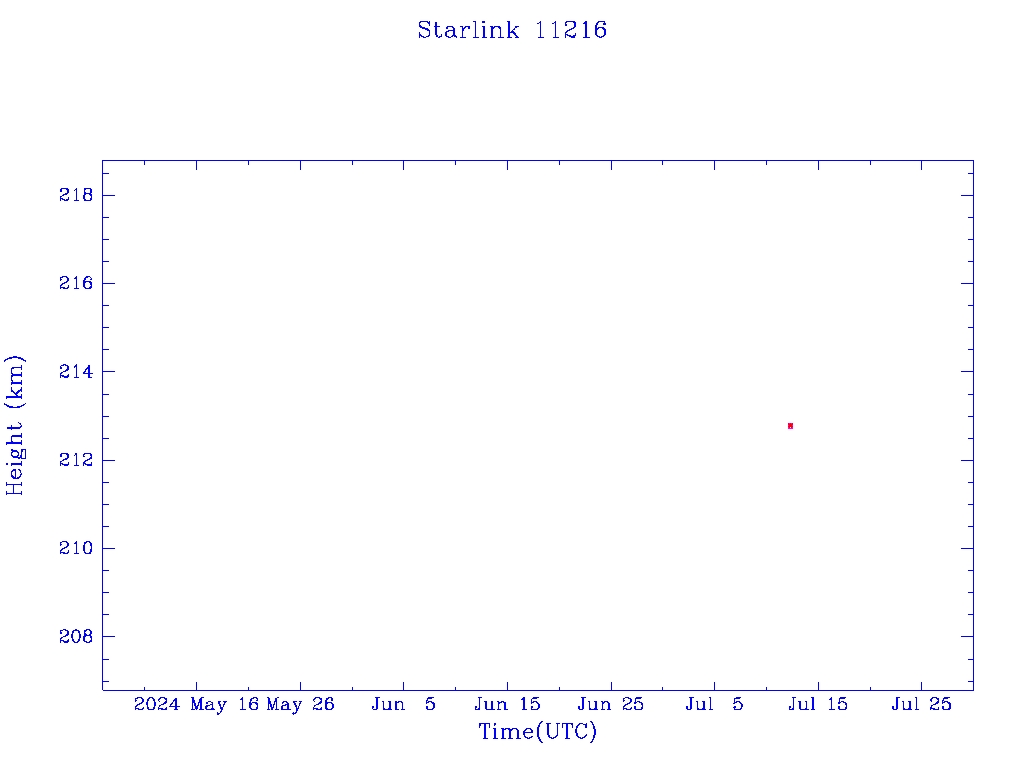 | Starlink 11216 | A11257 | F | 2024 Jul 12 | 2024 Jul 12 | 2024 Jul 12 |  |  |  |