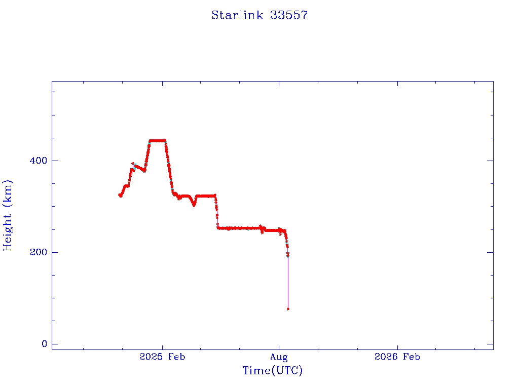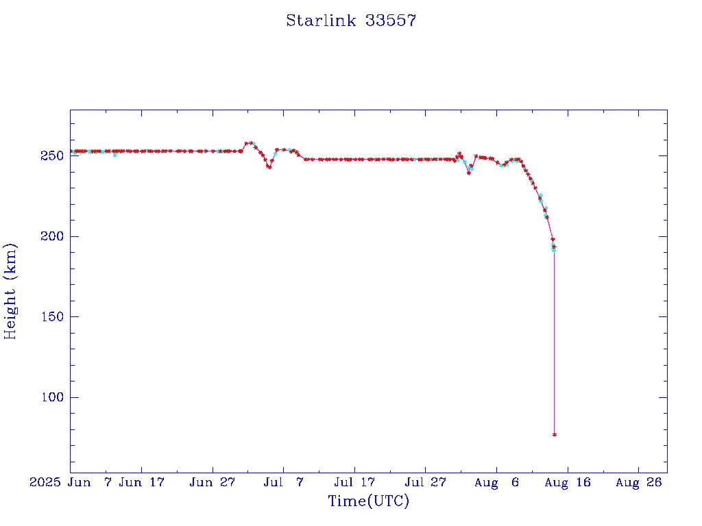 | Starlink 33542 | S62105 | F | 2024 Nov 25 | 2025 Aug 12 | 2025 Aug 16 |  |  |  |