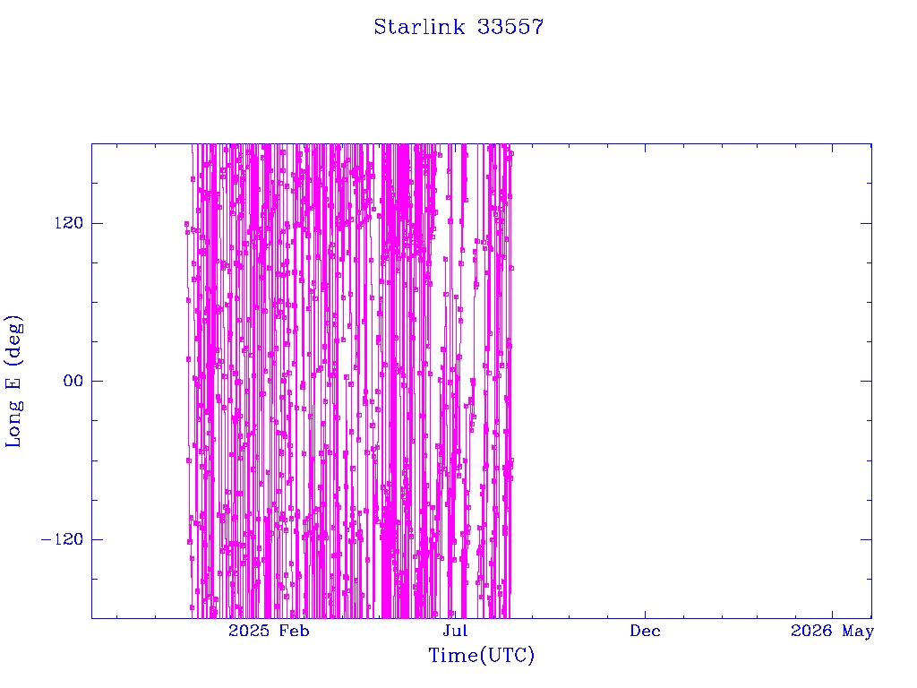 | Starlink 33557 | S62106 | F | 2024 Nov 25 | 2025 Aug 13? | 2025 Aug 13 |  |  |  |