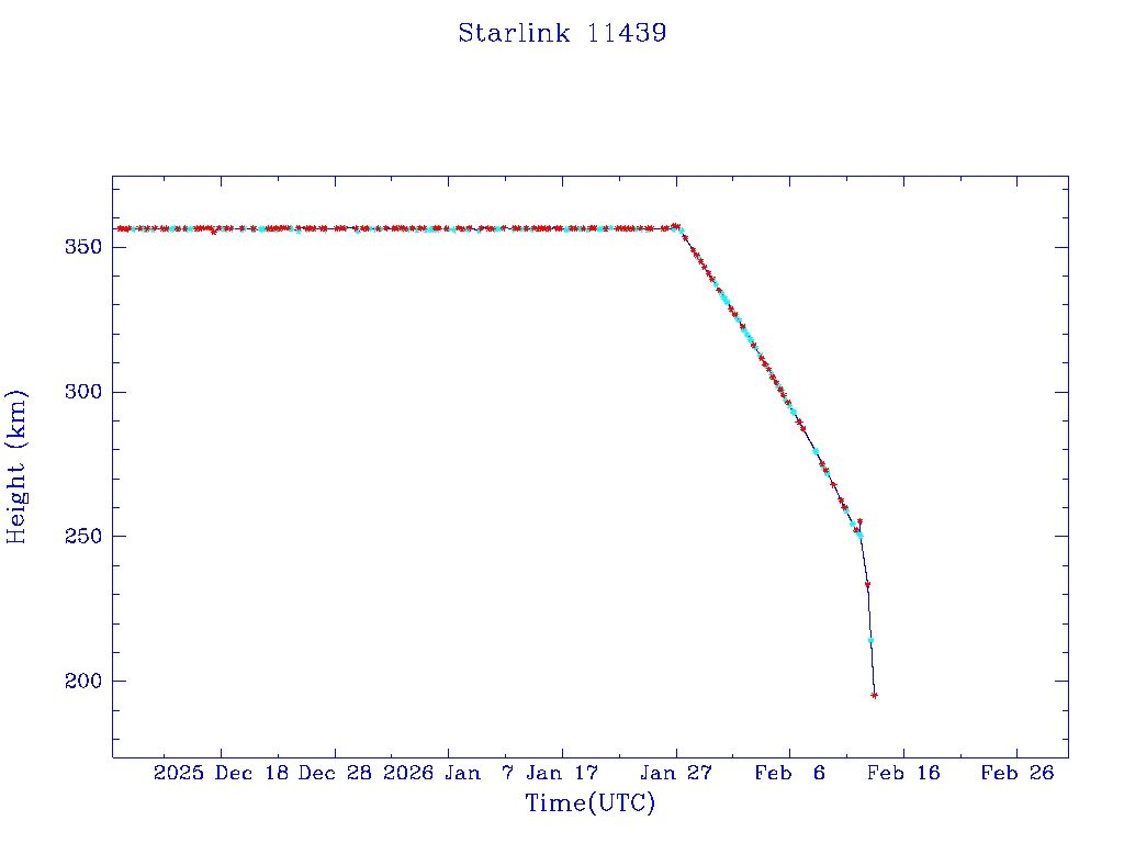 | Starlink 11439 | S62419 | R | 2024 Dec 23 | 2026 Feb 11 | 2026 Feb 13 |  |  |  |