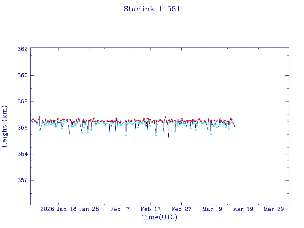 | Starlink 11581 | S63144 | O | 2025 Mar 3 | * | - |  |  |  |