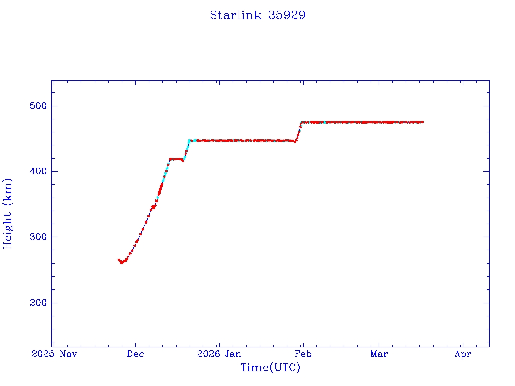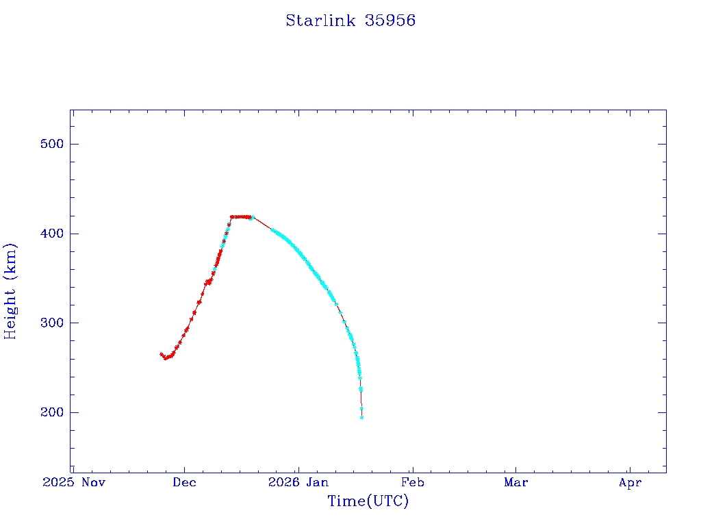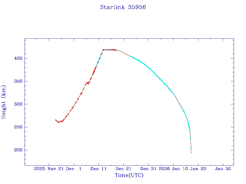 | Starlink 35956 | S66629 | M | 2025 Nov 23 | 2025 Dec 18 | 2026 Jan 17 |  |  |  |
