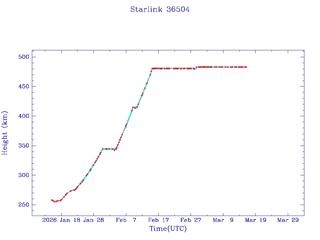 | Starlink 36504 | S67462 | O | 2026 Jan 14 | * | - |  |  |  |