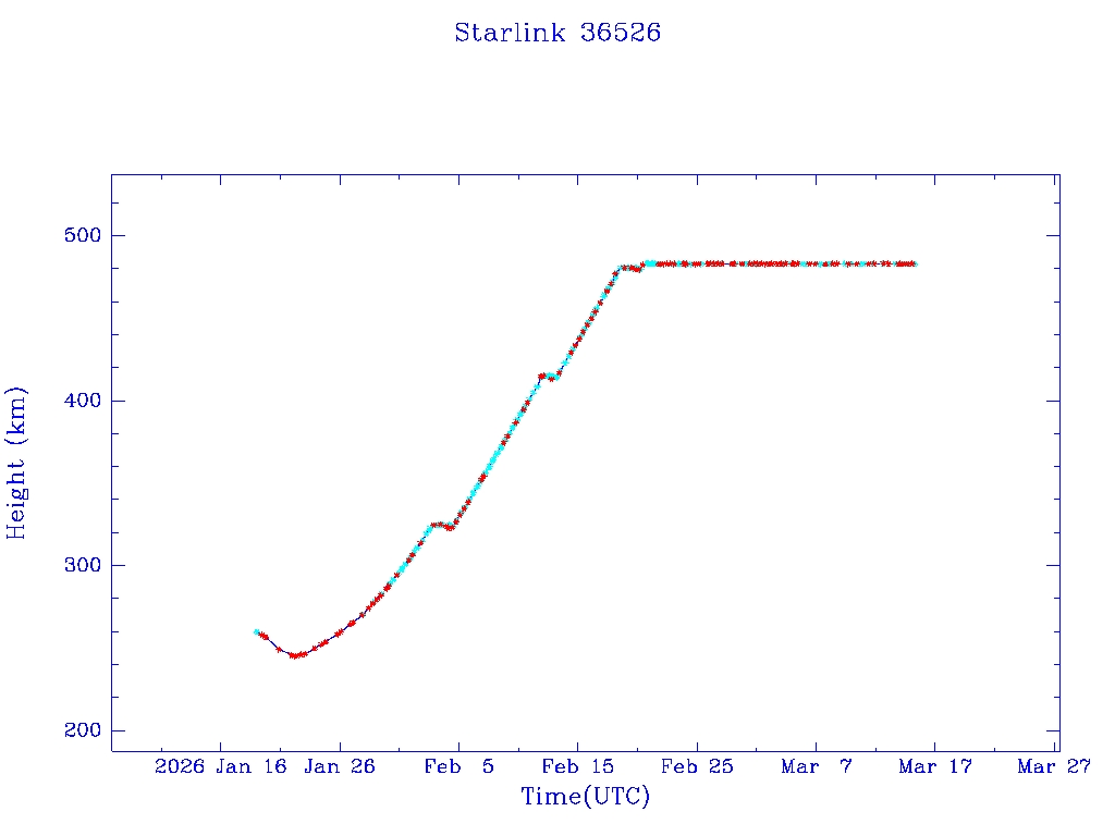 | Starlink 36526 | S67508 | O | 2026 Jan 18 | * | - |  |  |  |