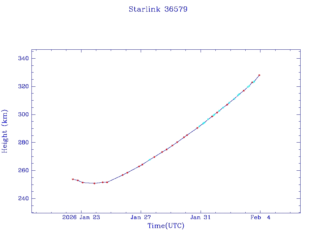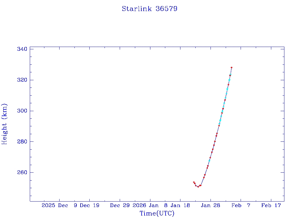 | Starlink 36579 | S67541 | A | 2026 Jan 22 | * | - |  |  |  |
