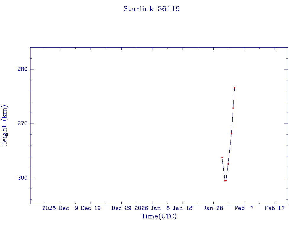 | Starlink 36119 | S67619 | A | 2026 Jan 30 | * | - |  |  |  |