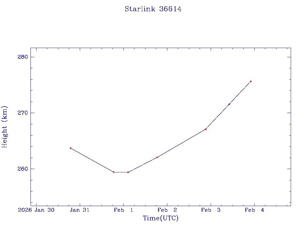 | Starlink 36614 | S67622 | A | 2026 Jan 30 | * | - |  |  |  |