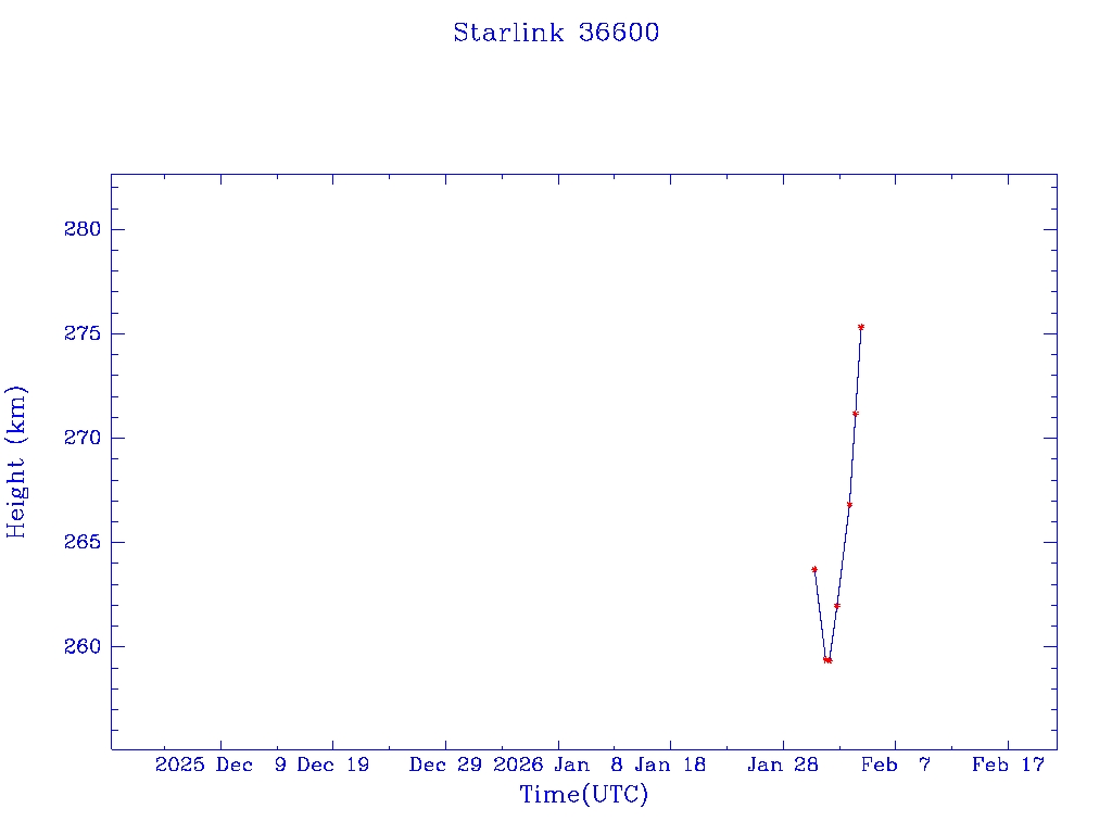 | Starlink 36600 | S67623 | A | 2026 Jan 30 | * | - |  |  |  |