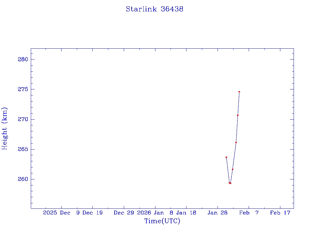 | Starlink 36438 | S67625 | A | 2026 Jan 30 | * | - |  |  |  |