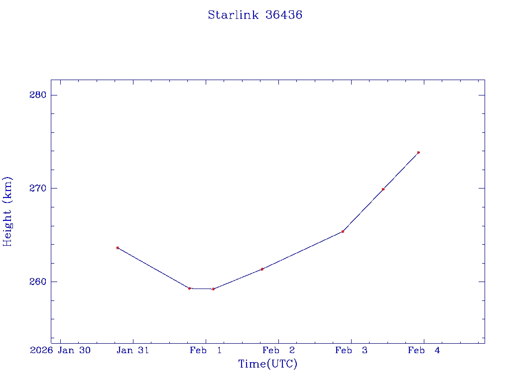 | Starlink 36436 | S67626 | A | 2026 Jan 30 | * | - |  |  |  |