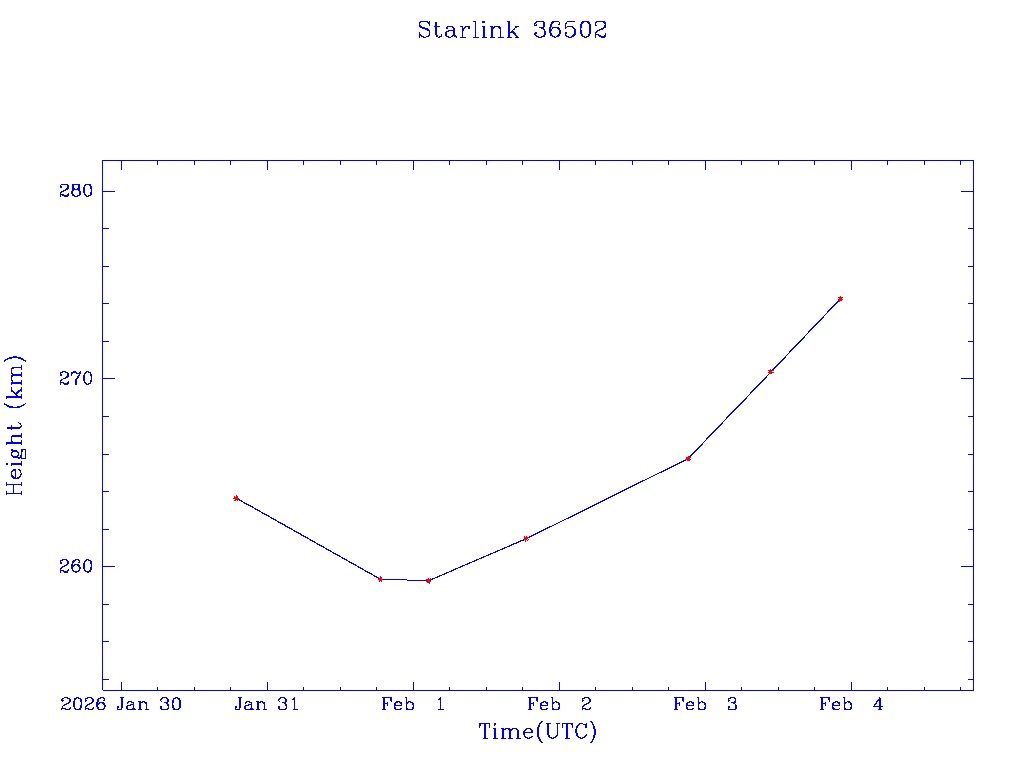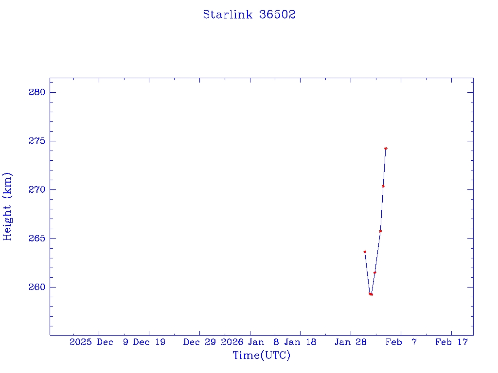 | Starlink 36502 | S67627 | A | 2026 Jan 30 | * | - |  |  |  |