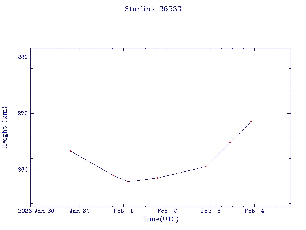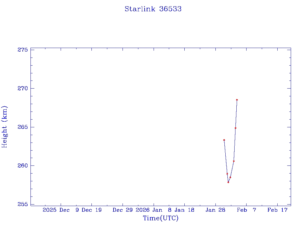 | Starlink 36533 | S67643 | A | 2026 Jan 30 | * | - |  |  |  |