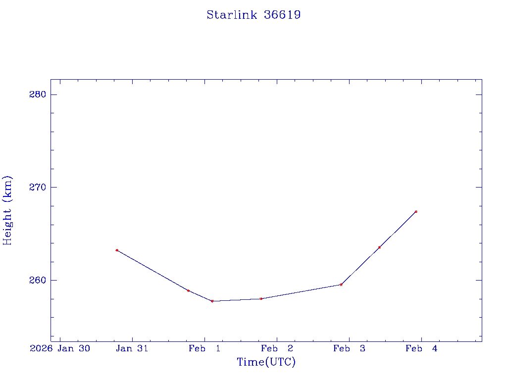 | Starlink 36619 | S67645 | A | 2026 Jan 30 | * | - |  |  |  |