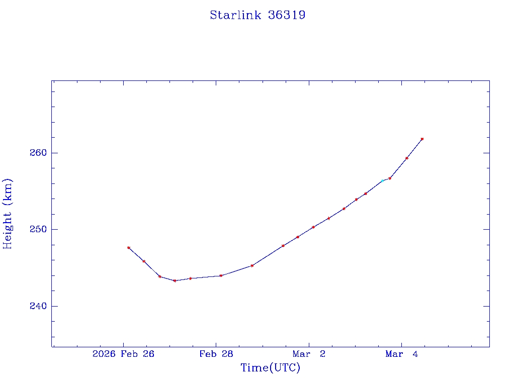 | Starlink 36319 | S67970 | A | 2026 Feb 25 | * | - |  |  |  |