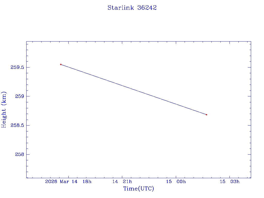 | Starlink 36242 | S68167 | D | 2026 Mar 14 | * | - |  |  |  |