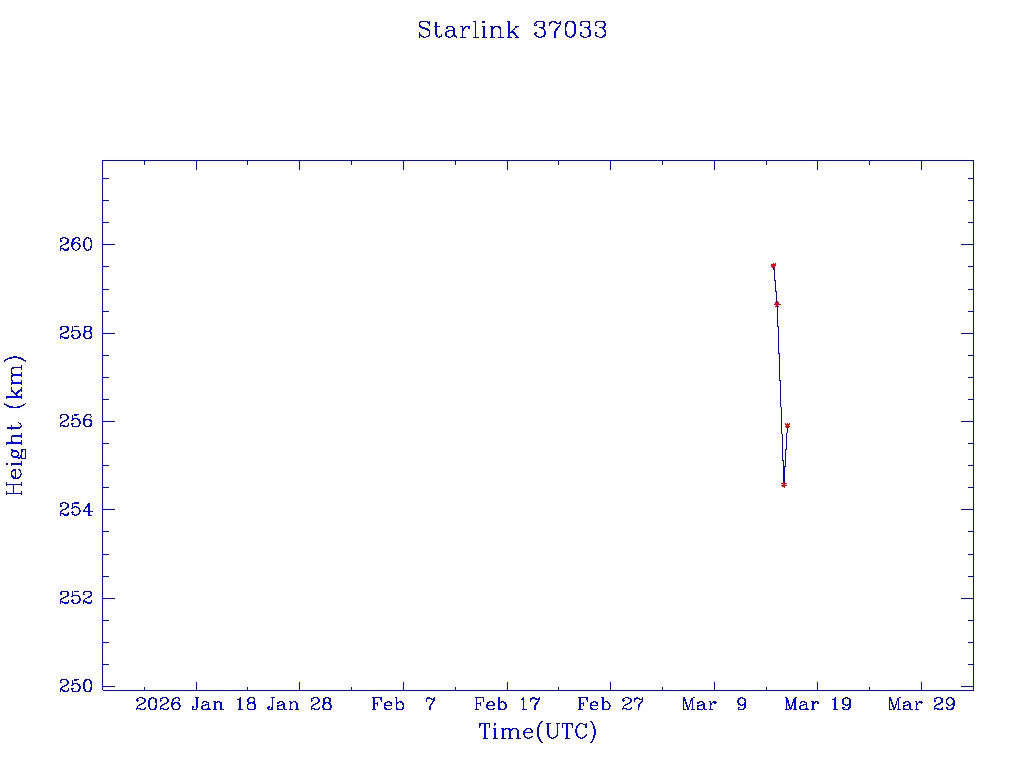 | Starlink 37033 | S68168 | D | 2026 Mar 14 | * | - |  |  |  |