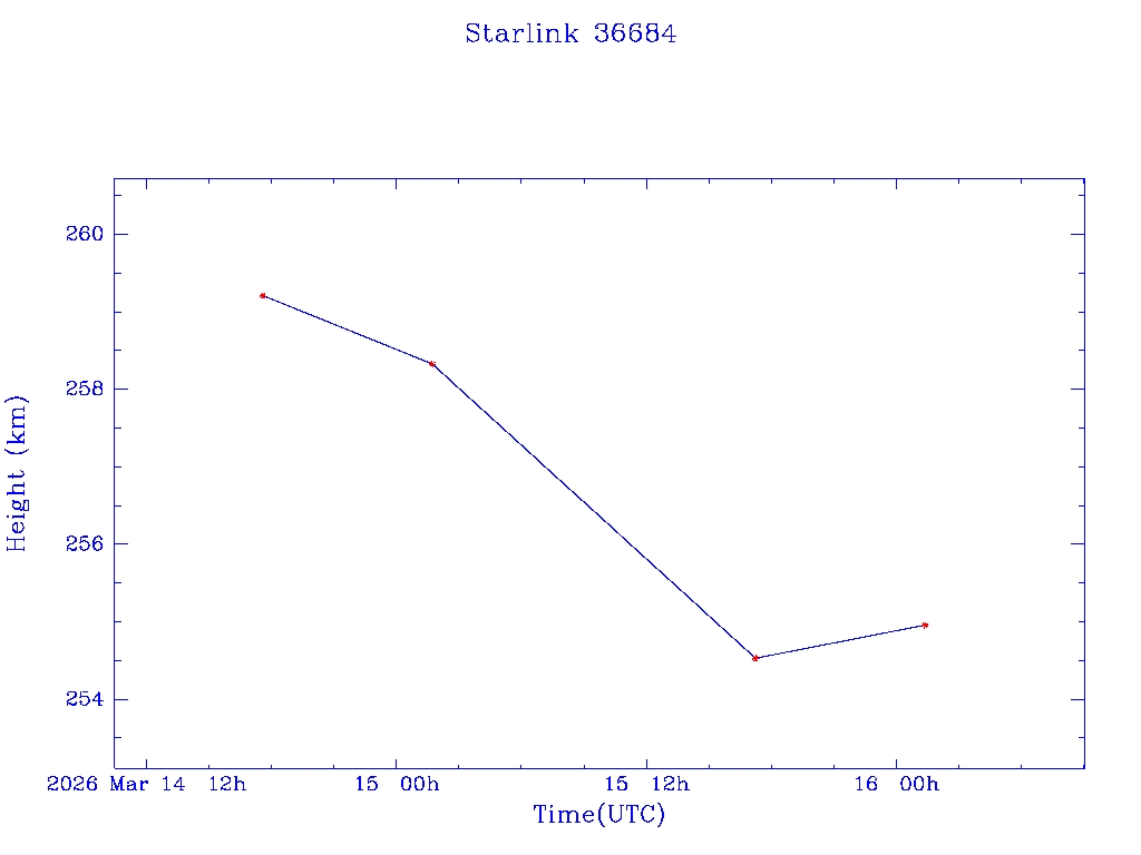 | Starlink 36684 | S68183 | D | 2026 Mar 14 | * | - |  |  |  |